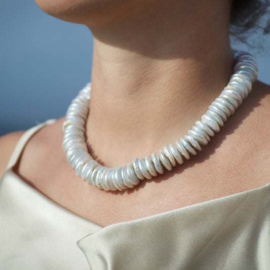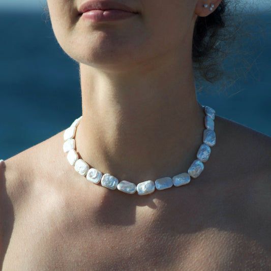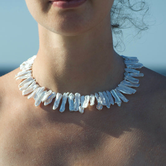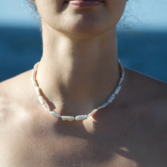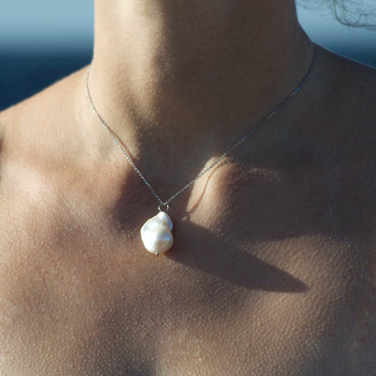 Necklaces entirely handmade with baroque pearls and 925 silver clasp.