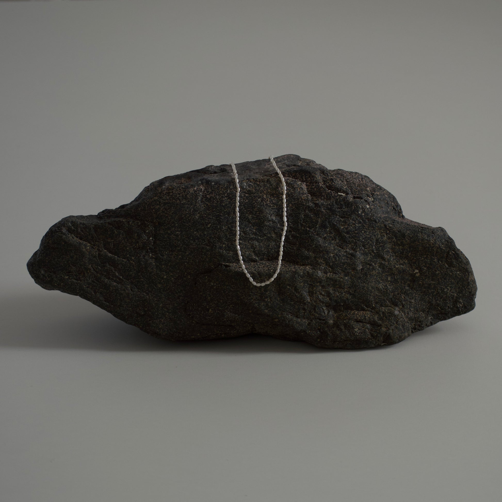 Necklace entirely handmade with striped rice grain pearls and a 925 silver clasp.