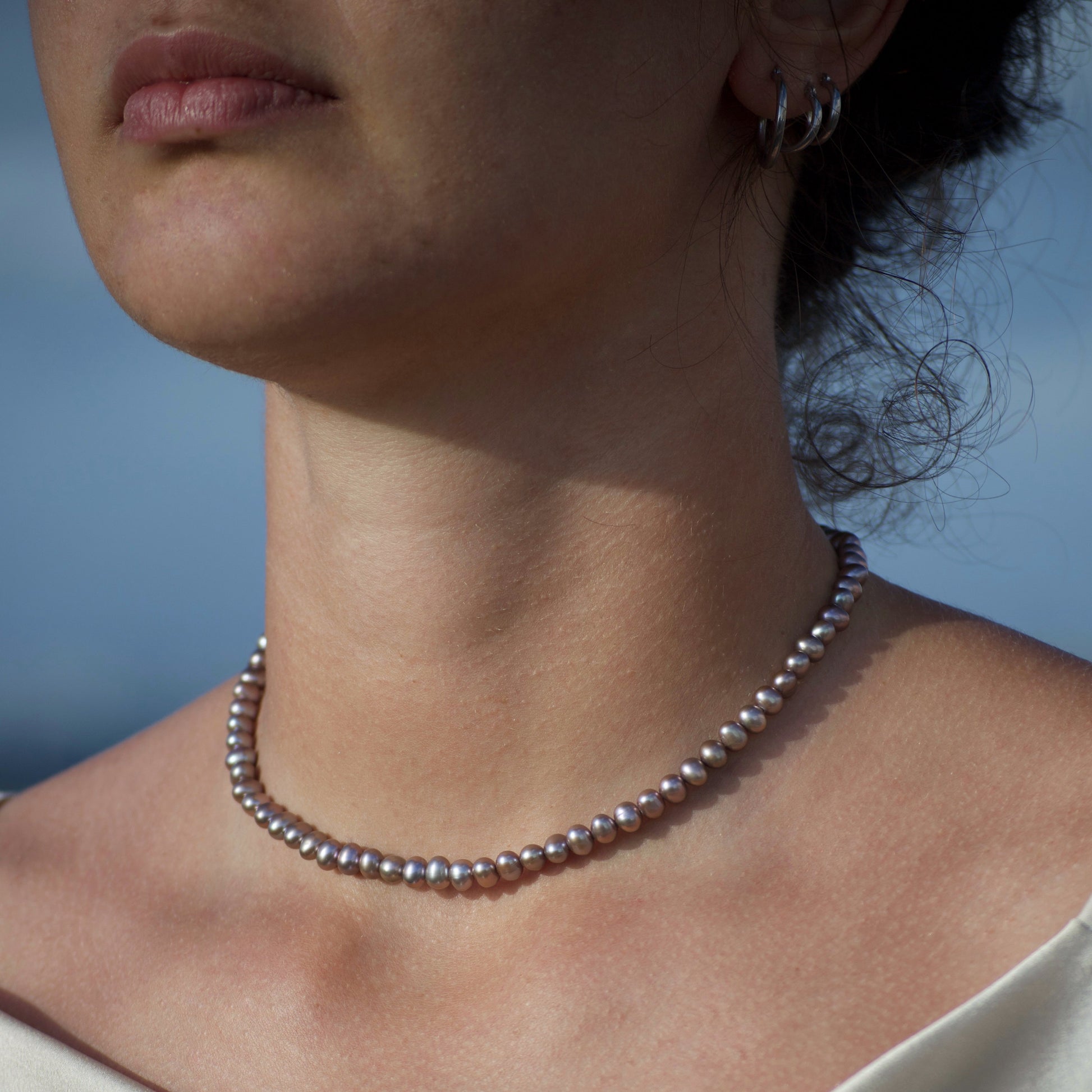 Necklace entirely handmade with round pearls and 925 silver clasp.