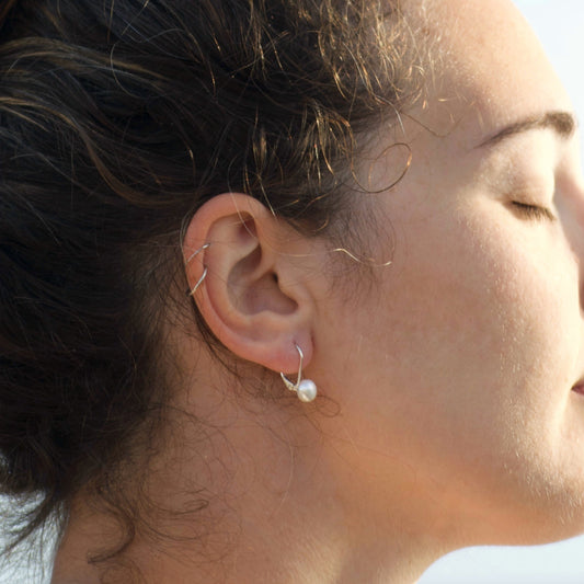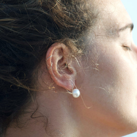925 silver snap-on earrings with irregular pearls of various types.