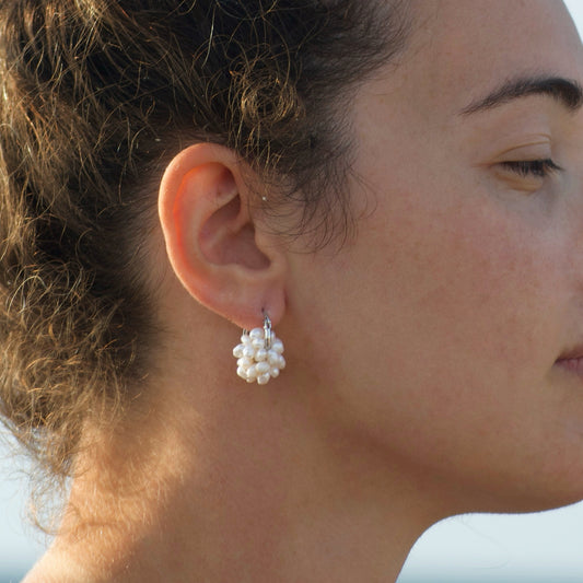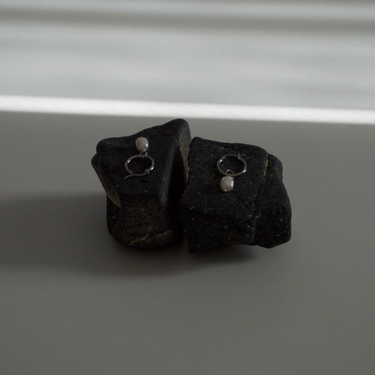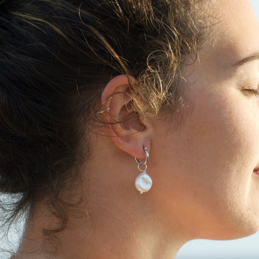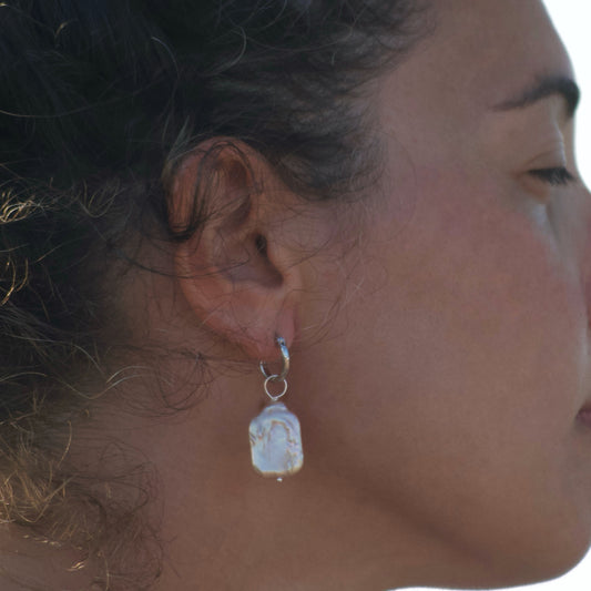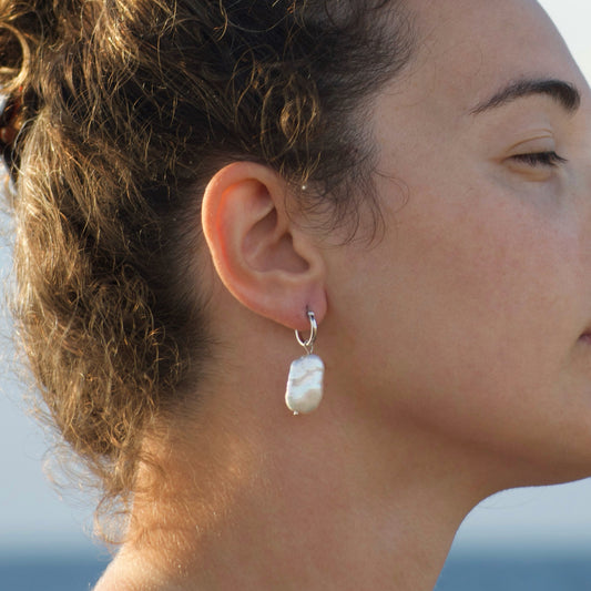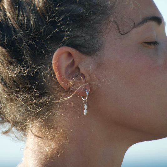 Hoop earrings with snap closure in 925 silver and irregular pearls of various types as a pendant.