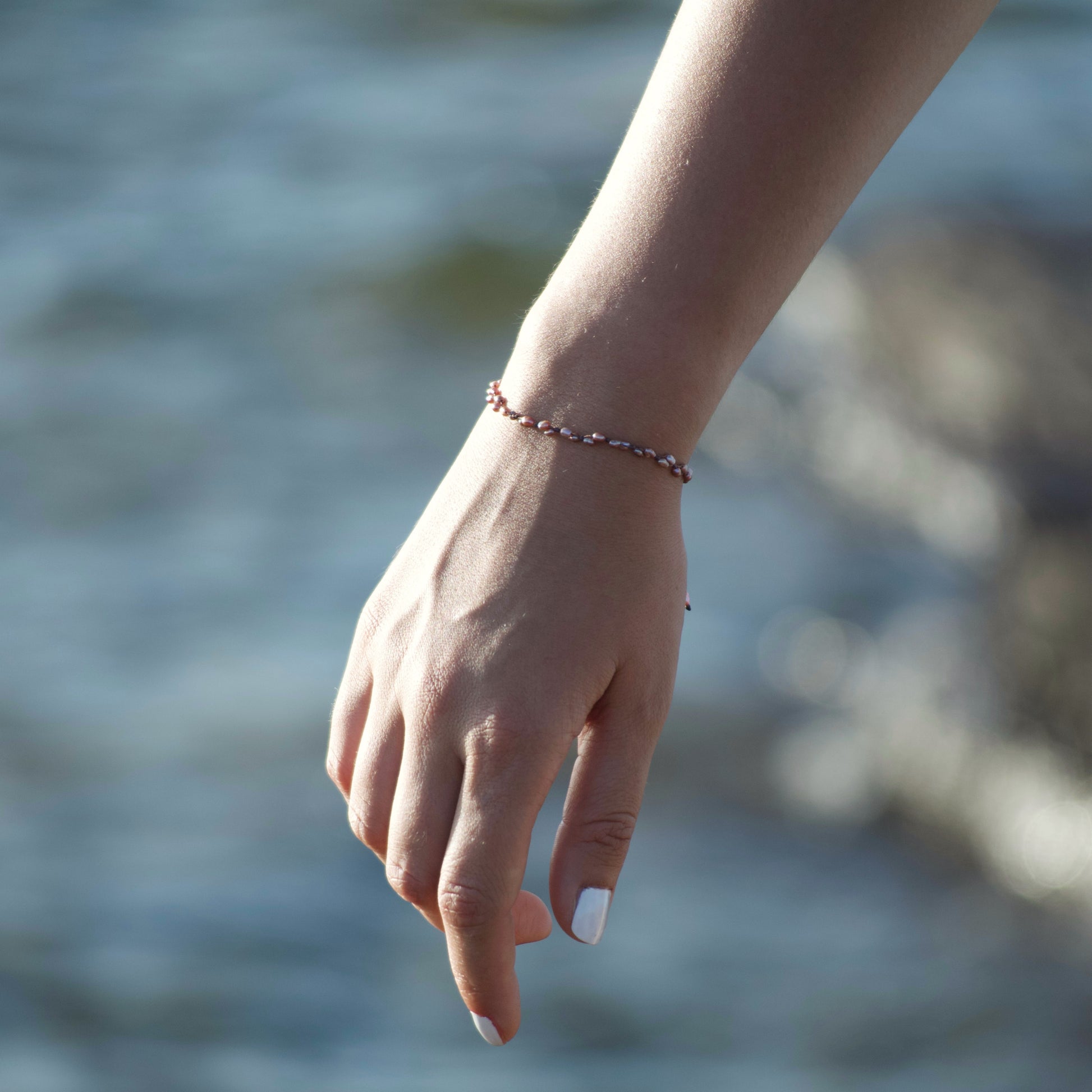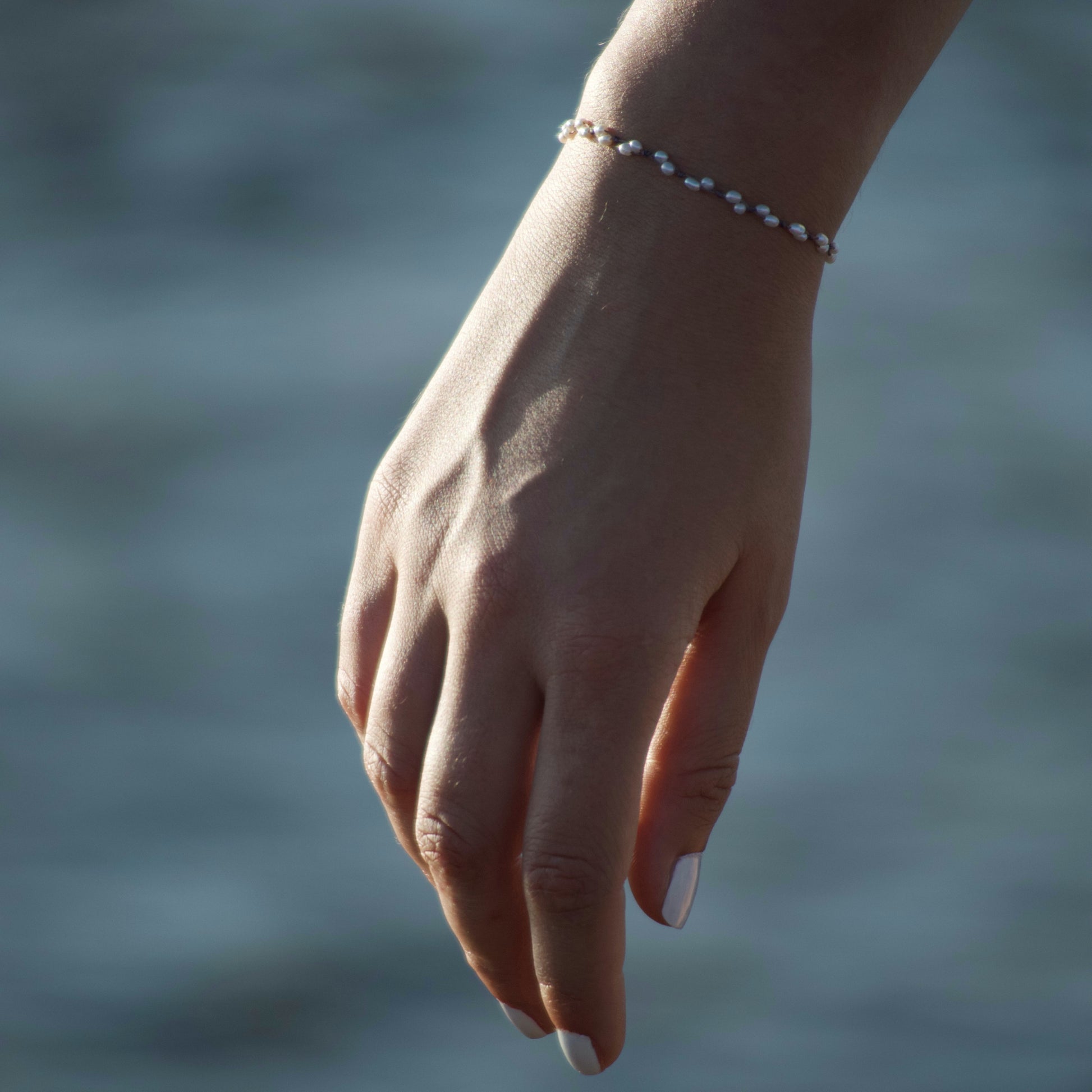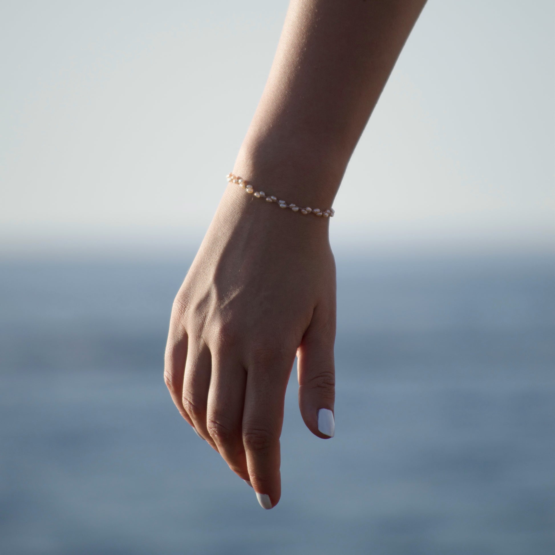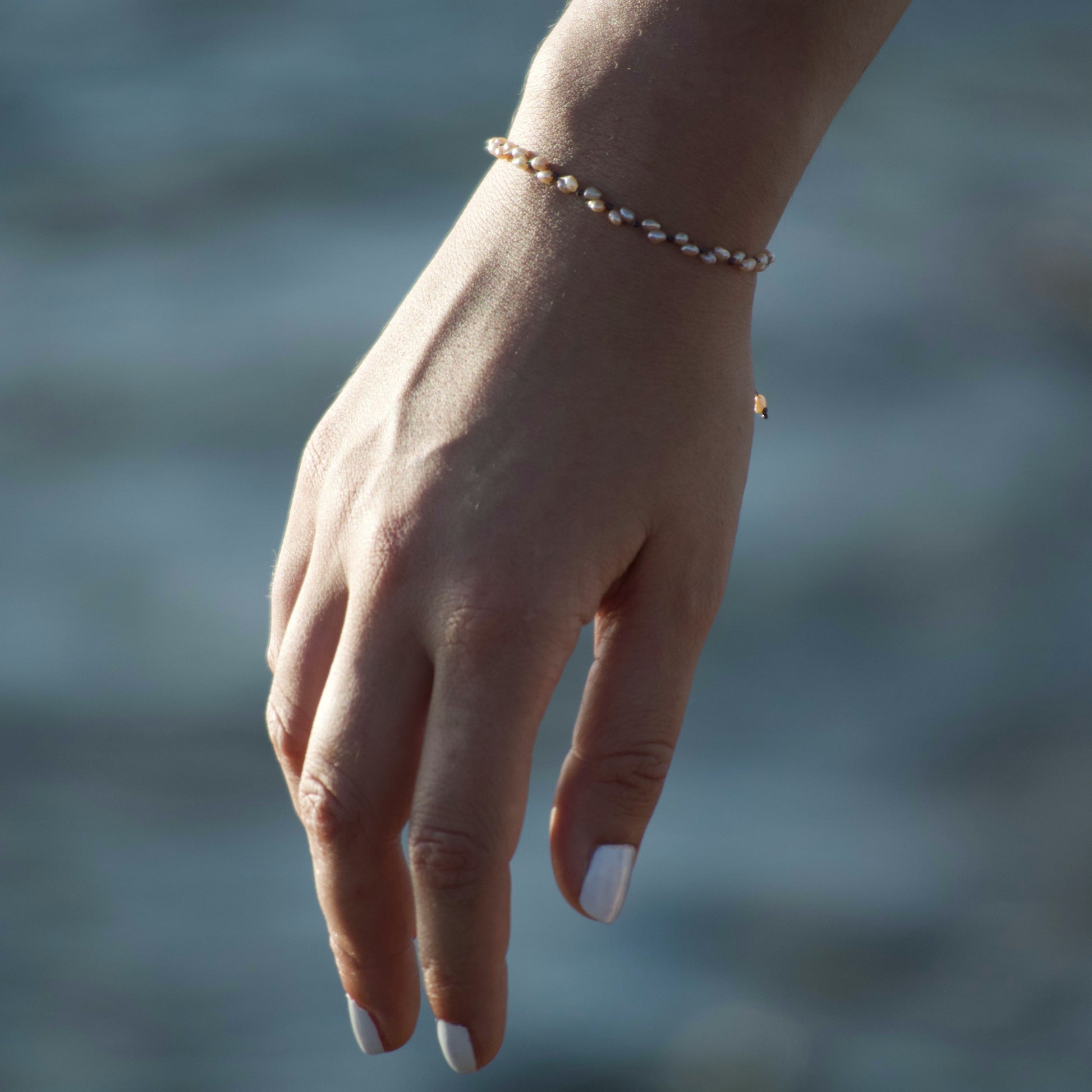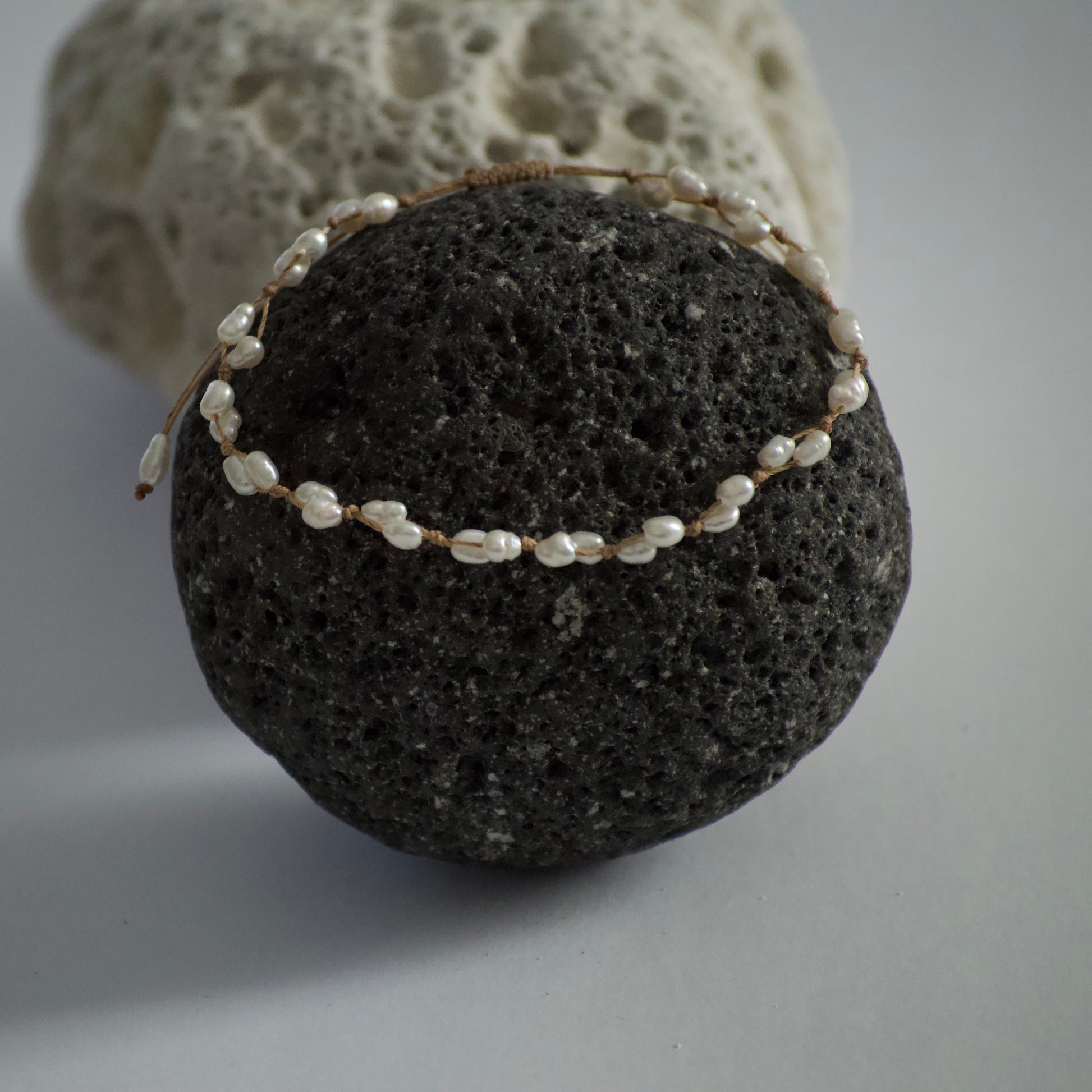 Bracelet entirely handmade with irregular pearls and waxed cotton thread.