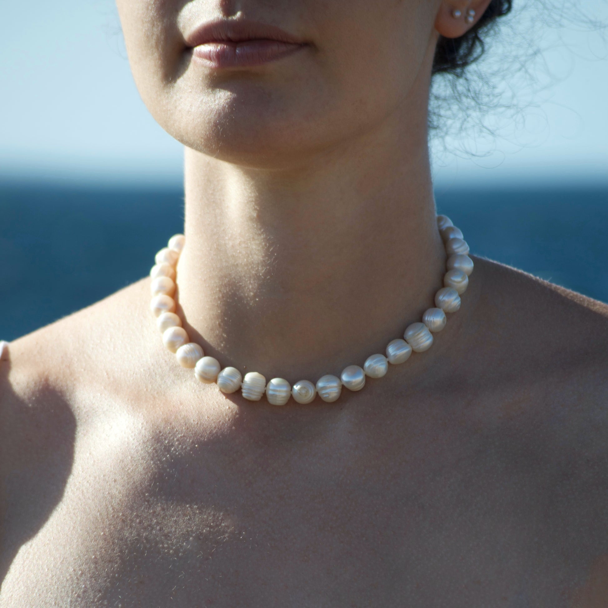 Necklace entirely handmade with striped pearls and 925 silver clasp.