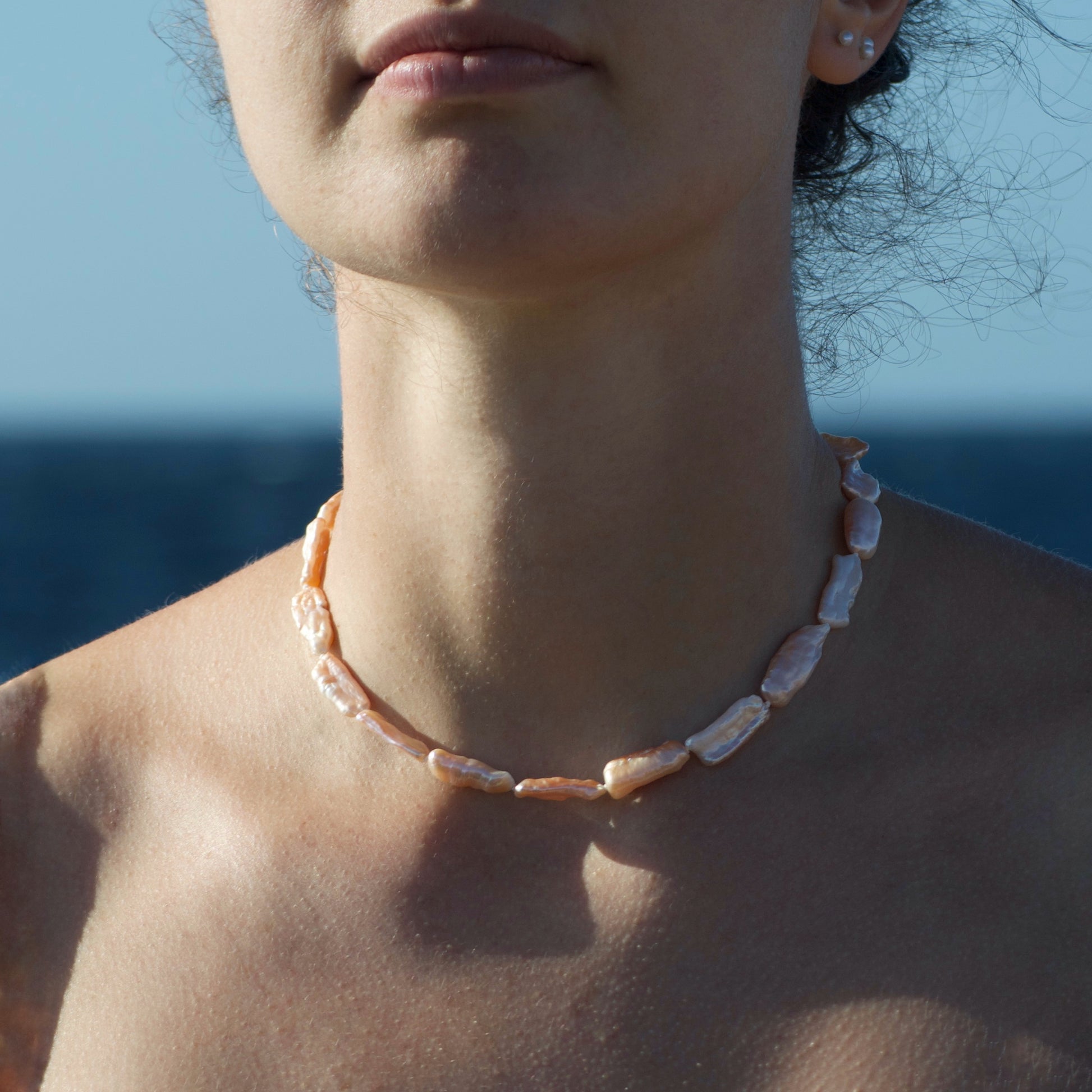 Necklace entirely handmade with baroque pearls and 925 silver clasp.