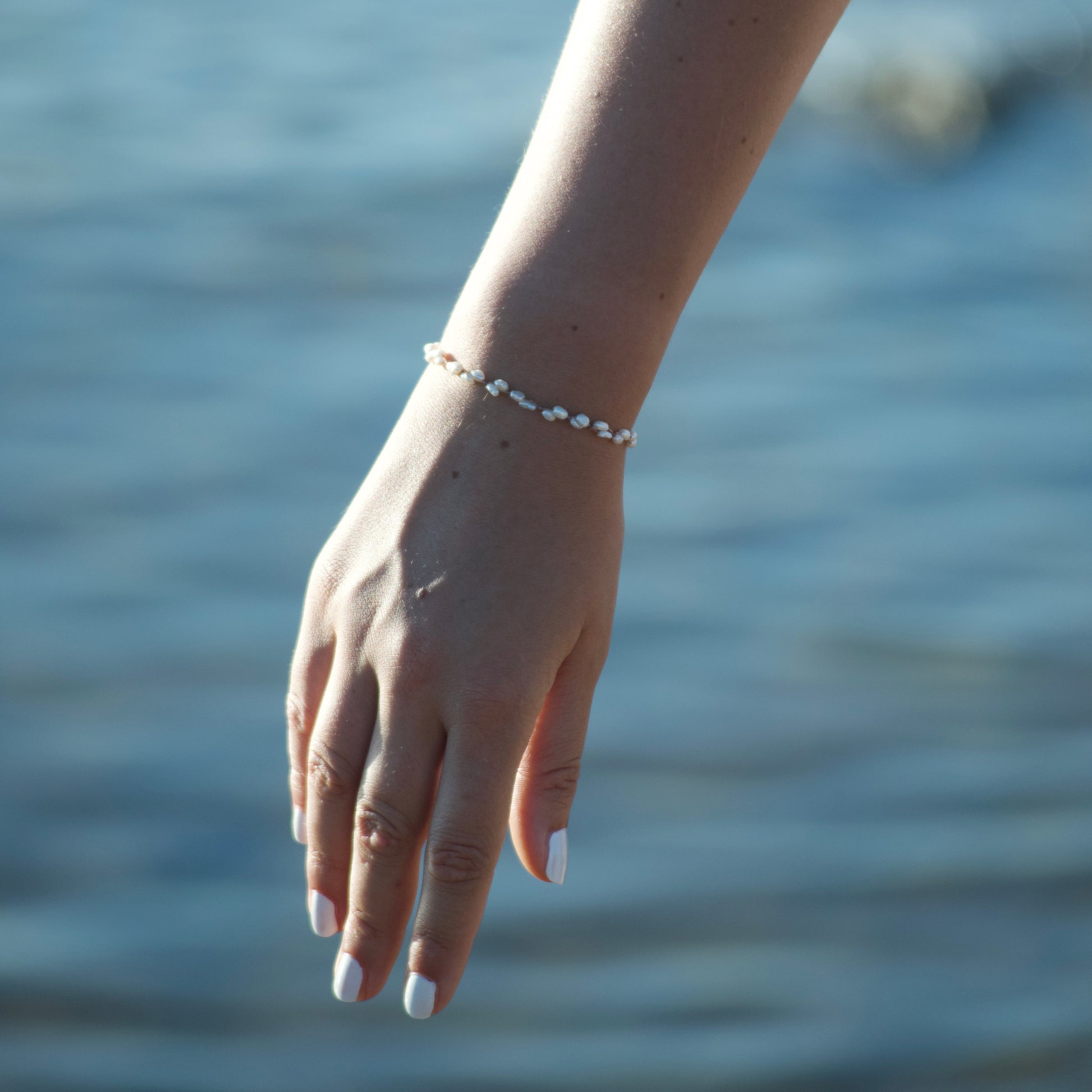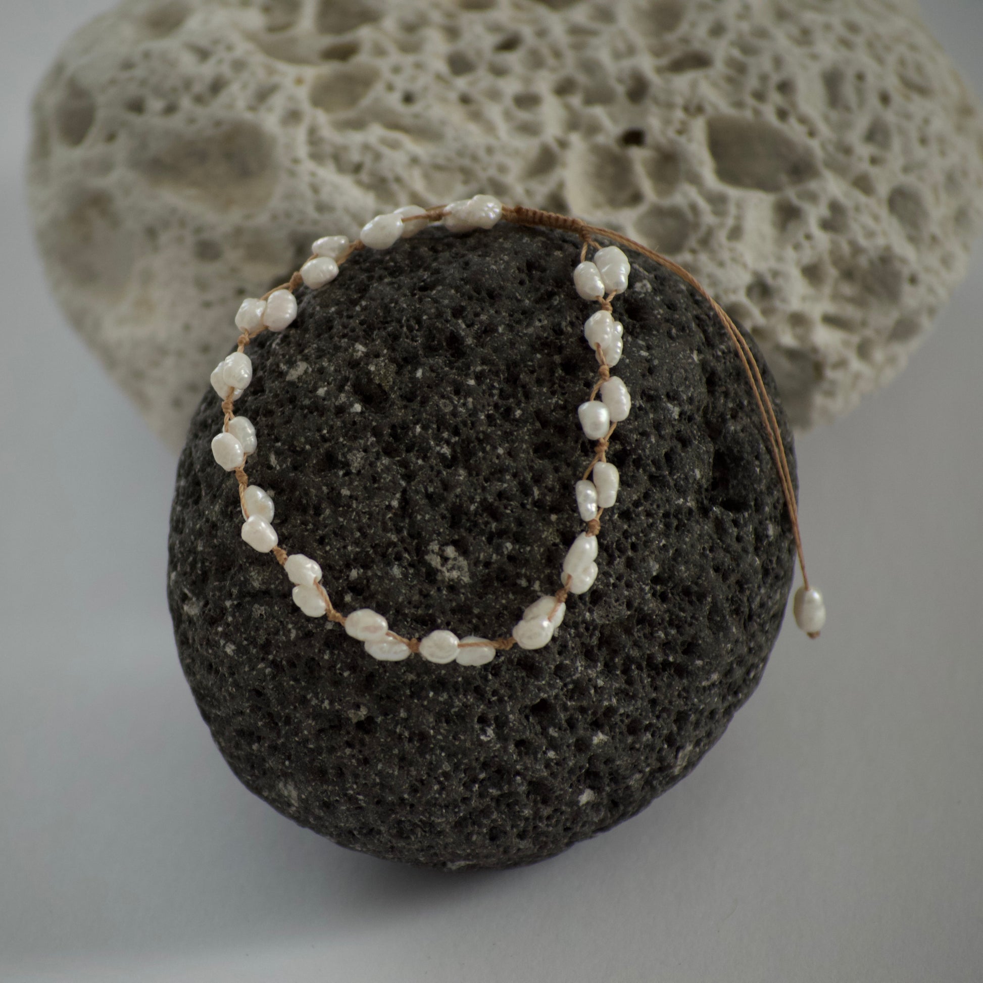 Bracelet entirely handmade with irregular pearls and waxed cotton thread.