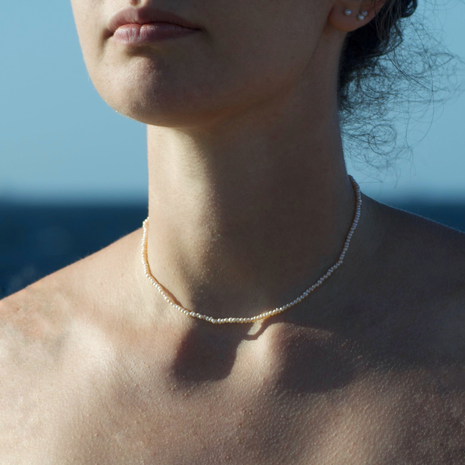 Necklace entirely handmade with stone pearls and 925 silver clasp.