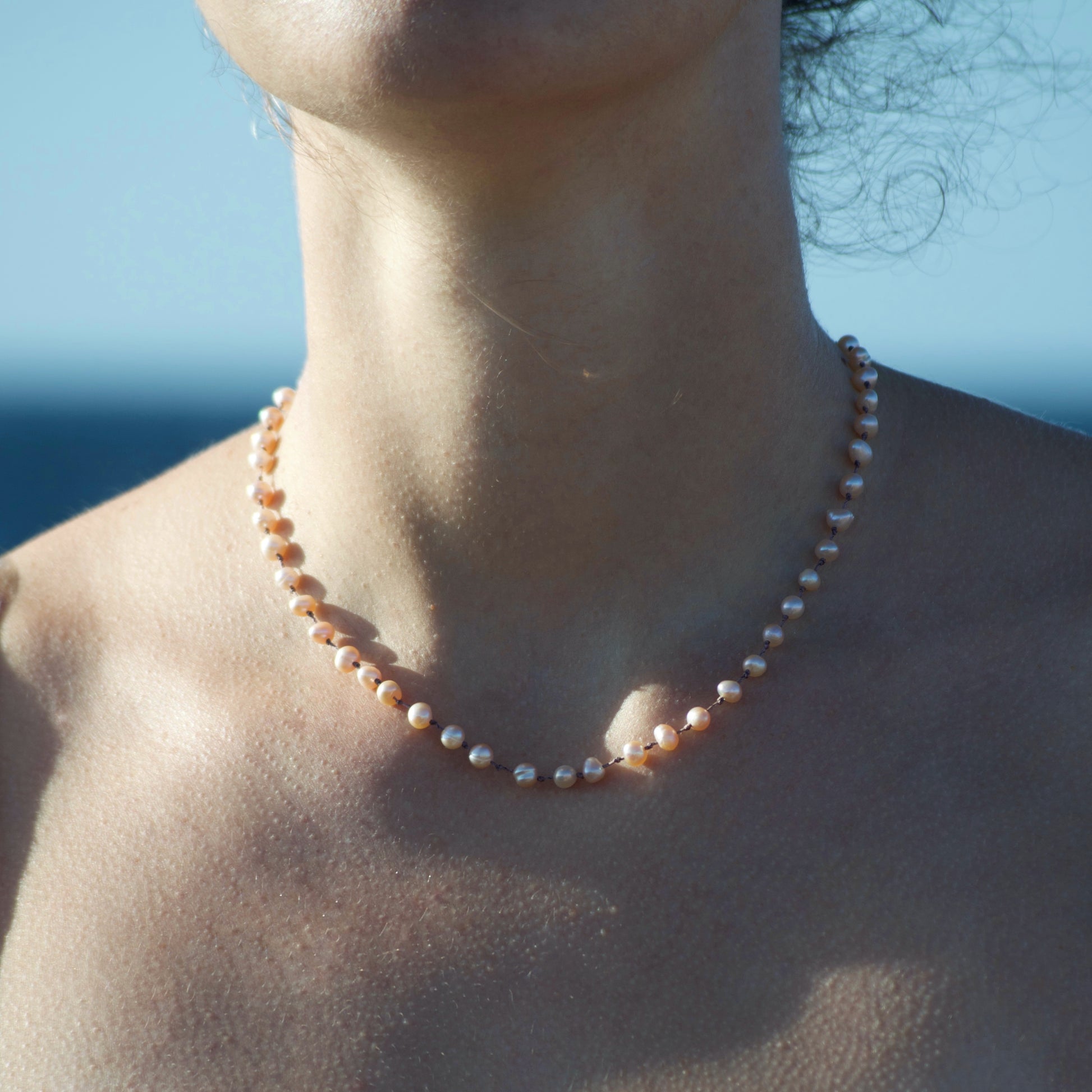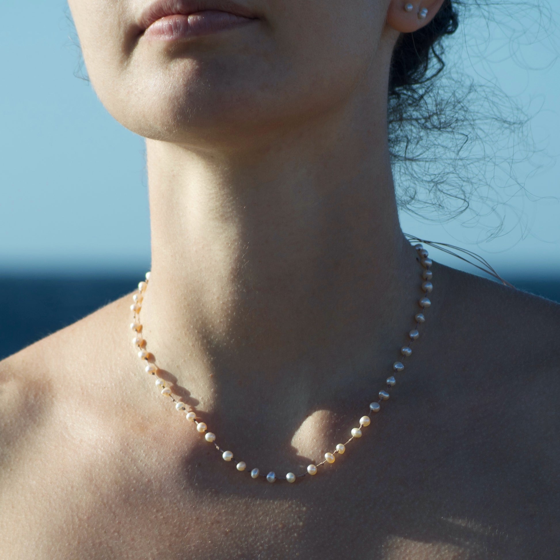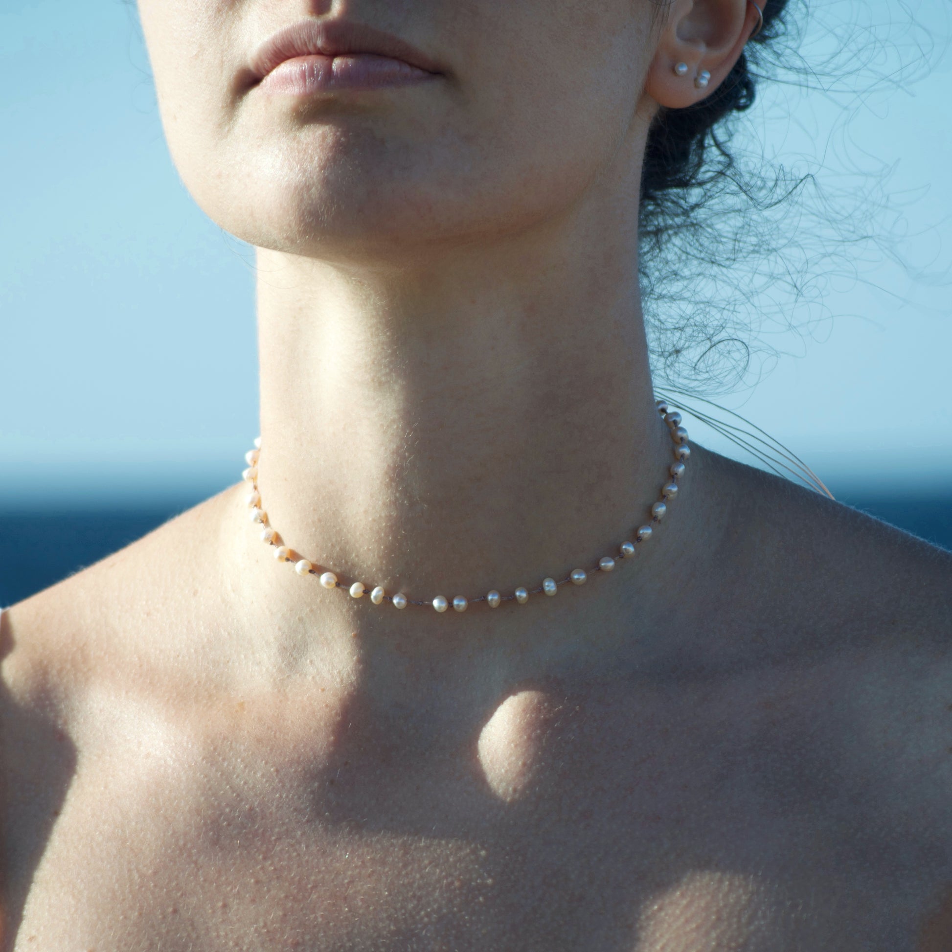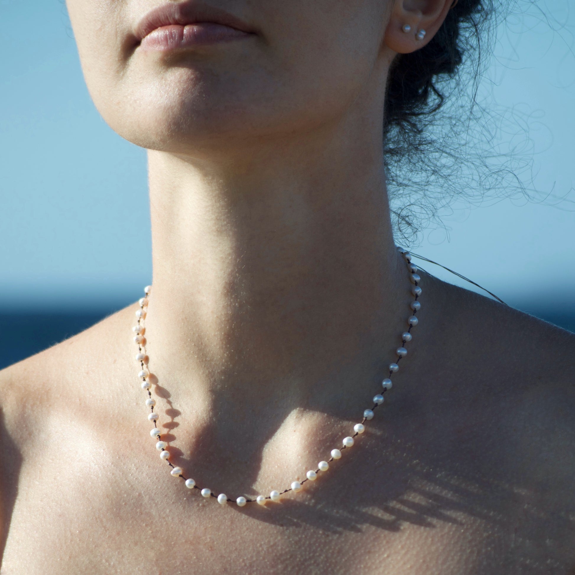 Necklace entirely handmade with irregular pearls and waxed cotton thread.