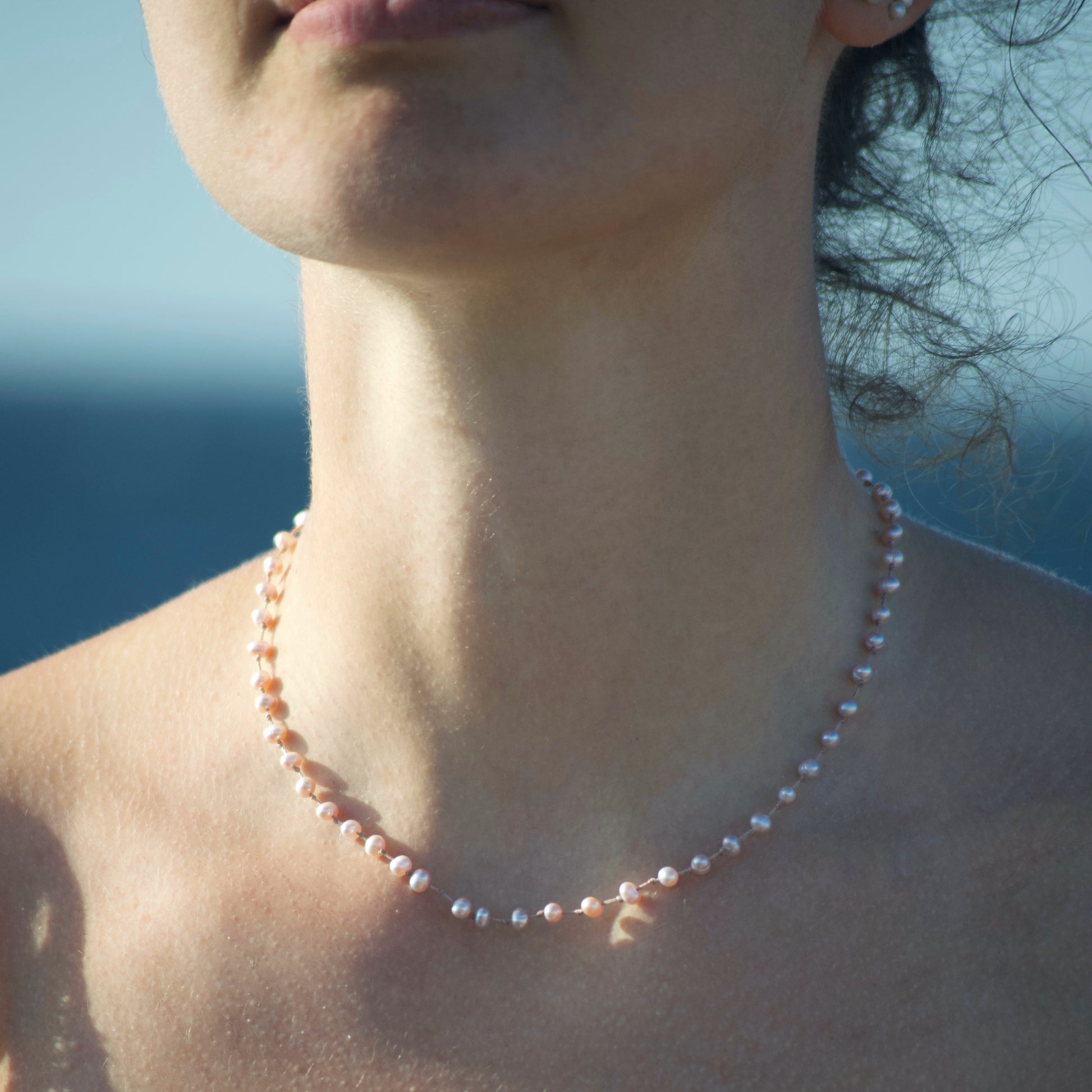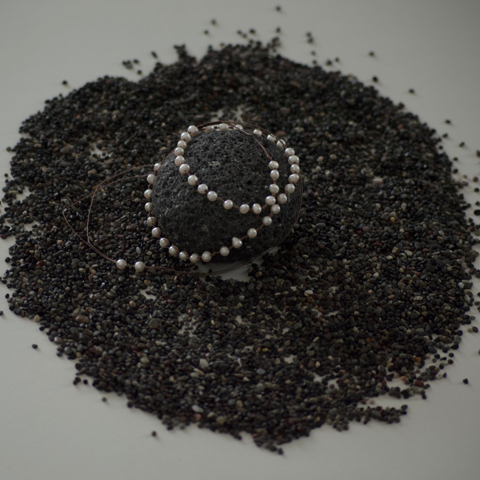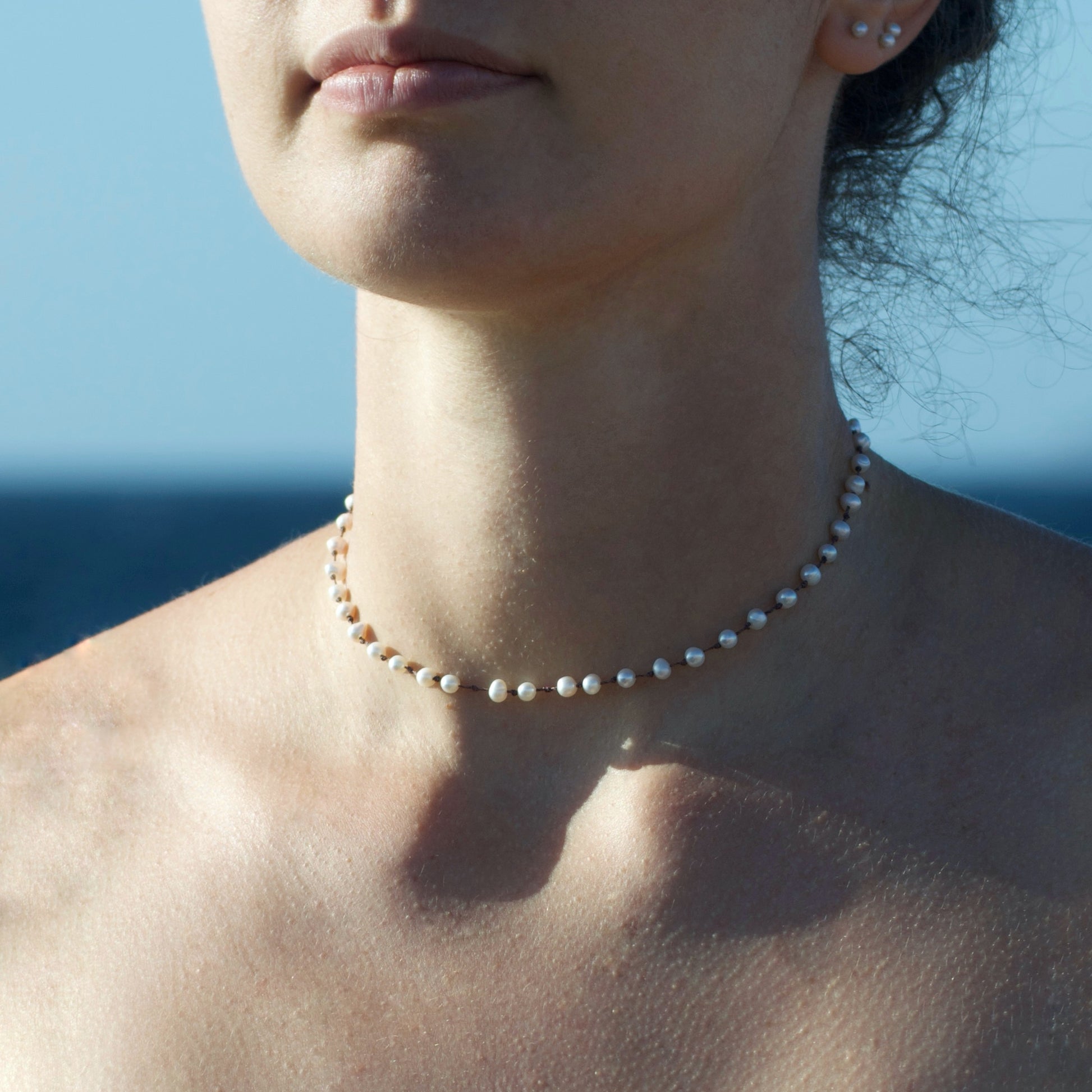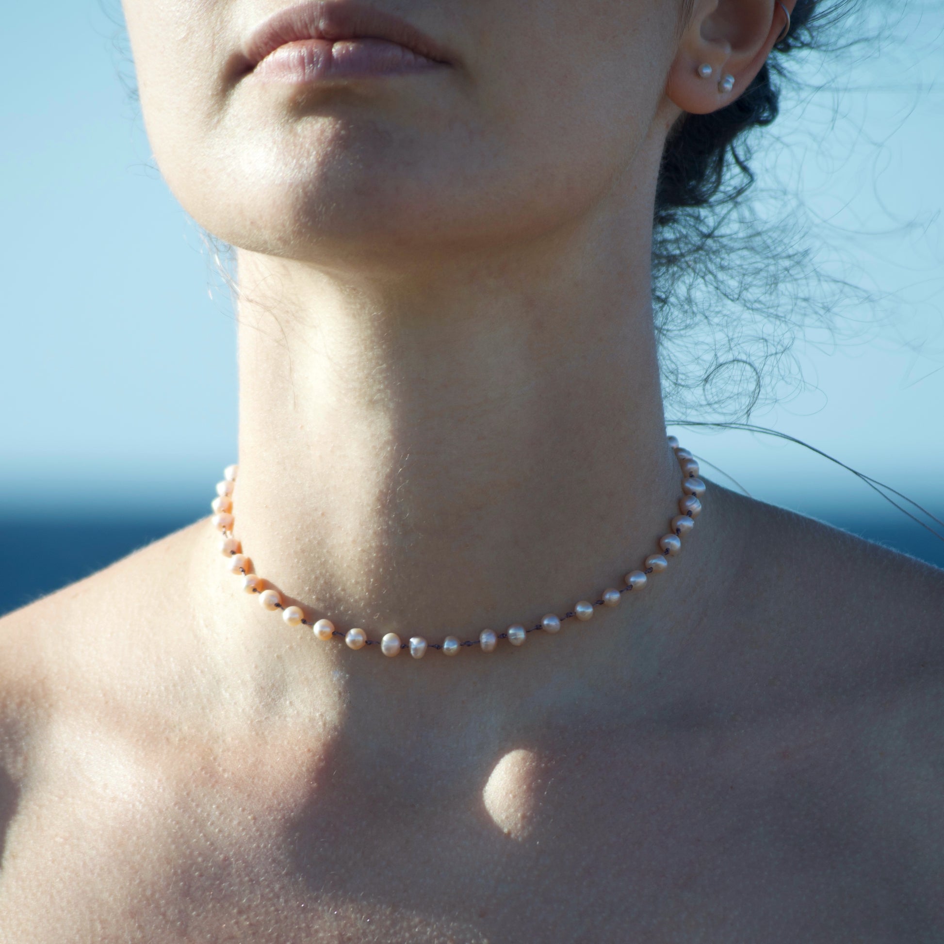 Necklace entirely handmade with irregular pearls and waxed cotton thread.