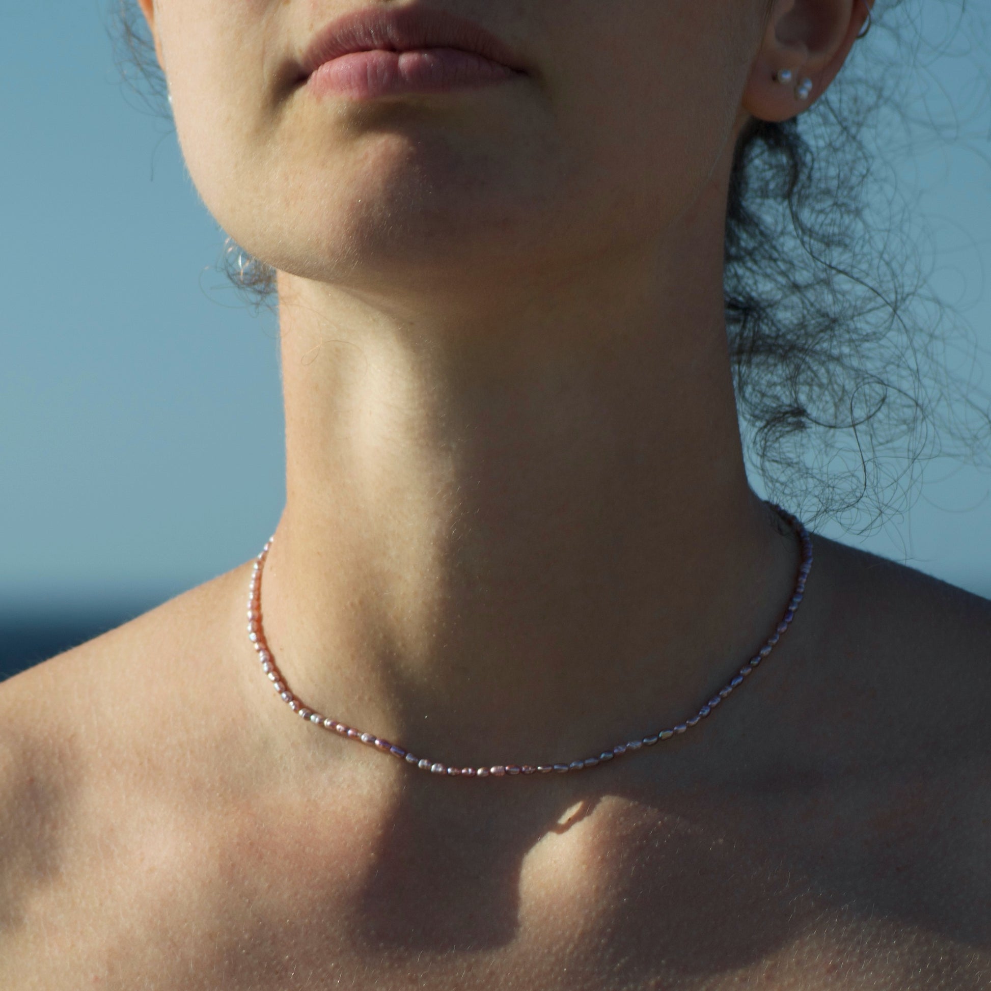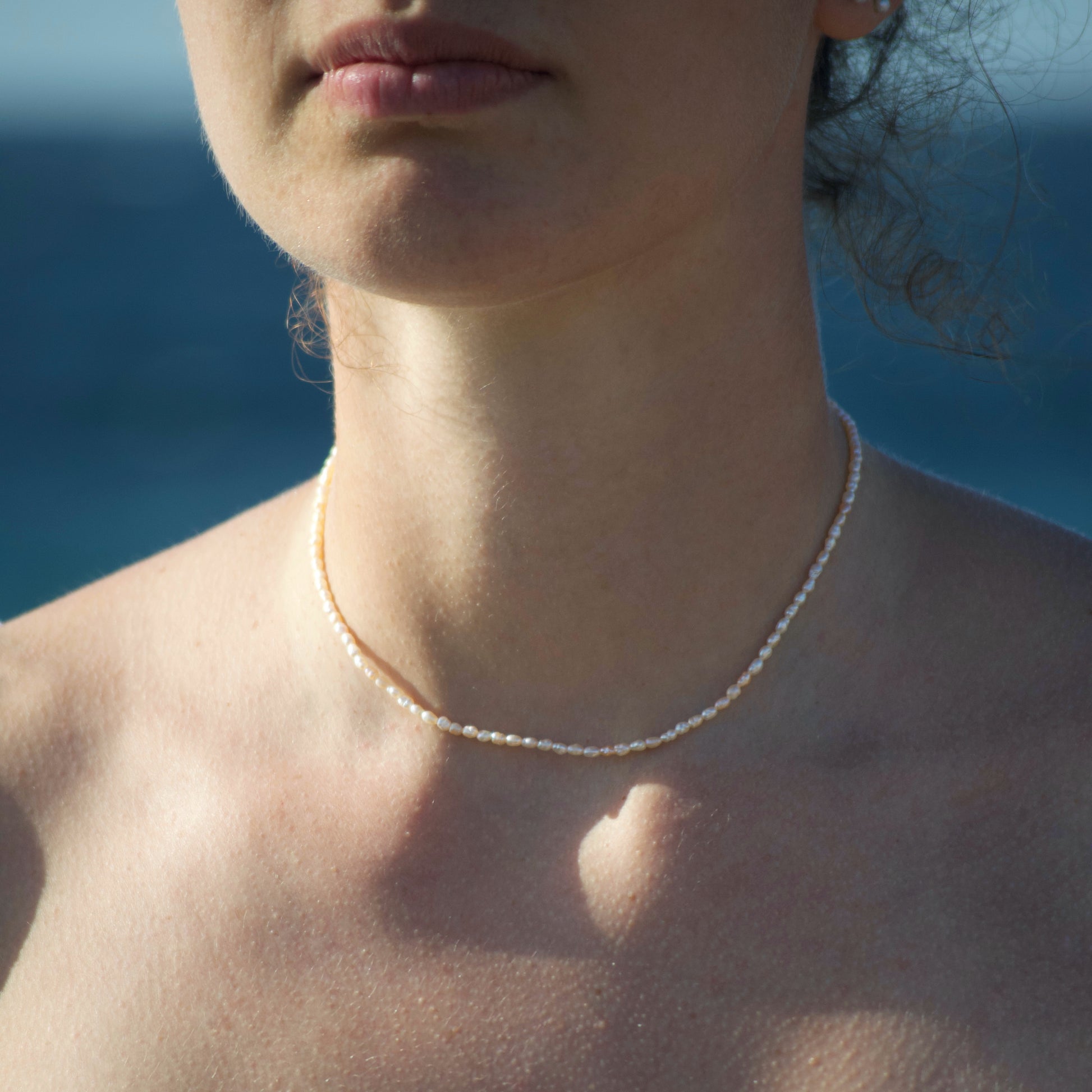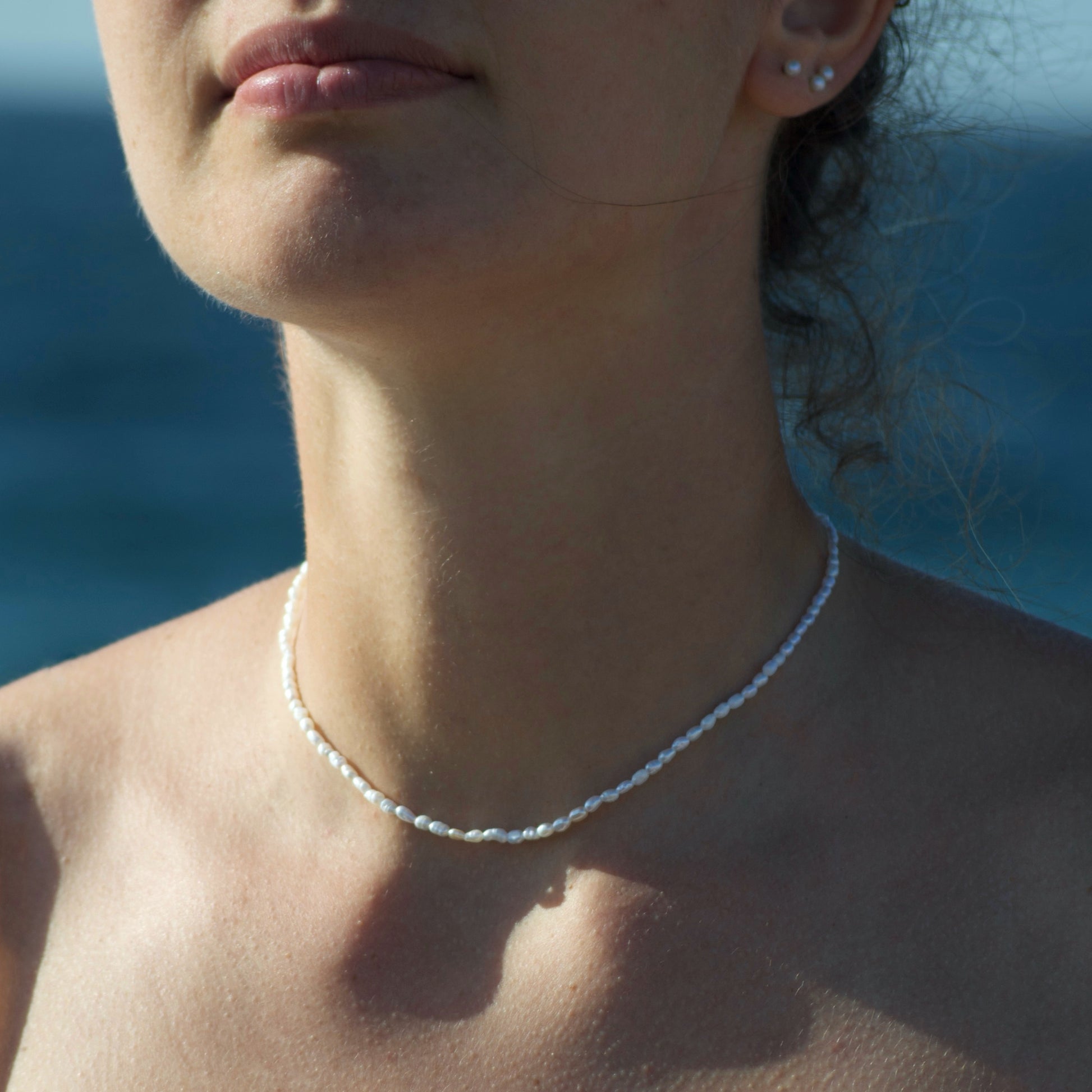 Necklace entirely handmade with rice grain pearls and 925 silver clasp.