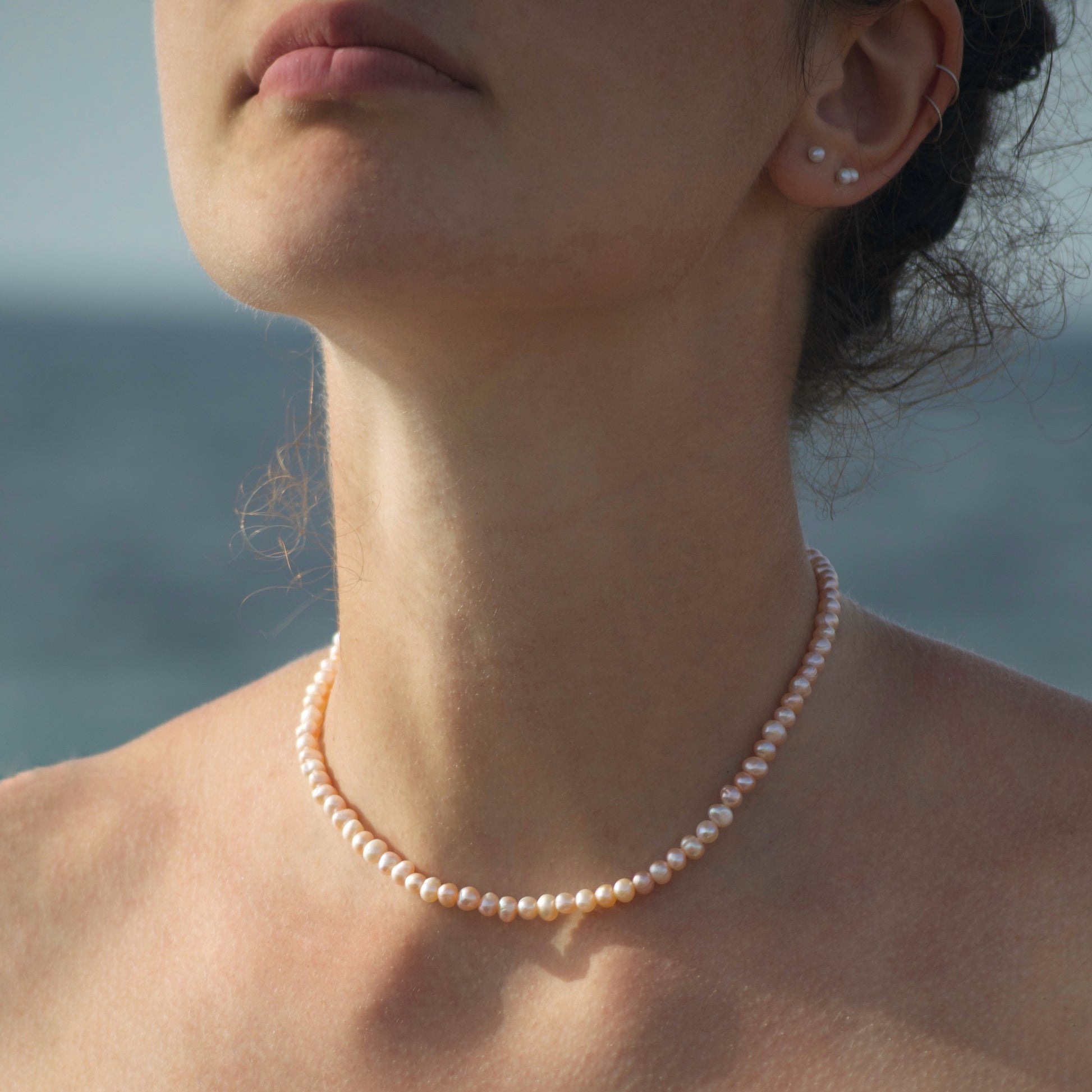 Necklace entirely handmade with round pearls and 925 silver clasp.