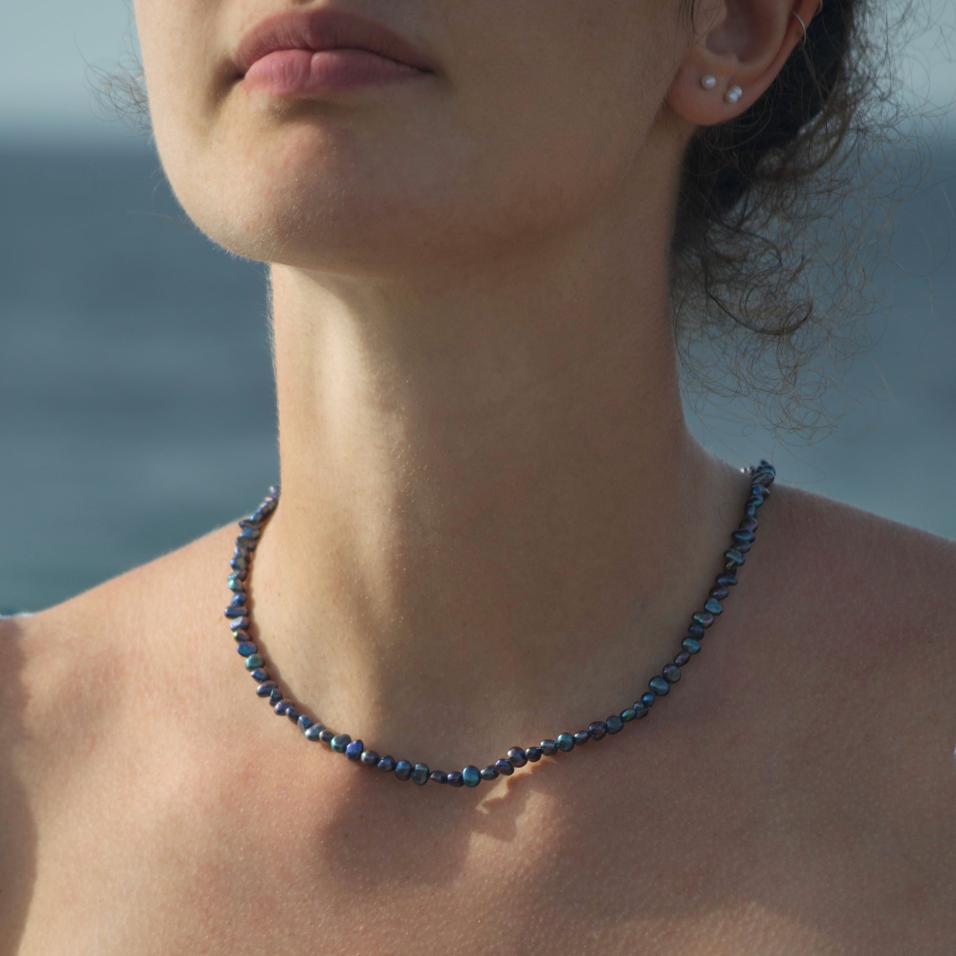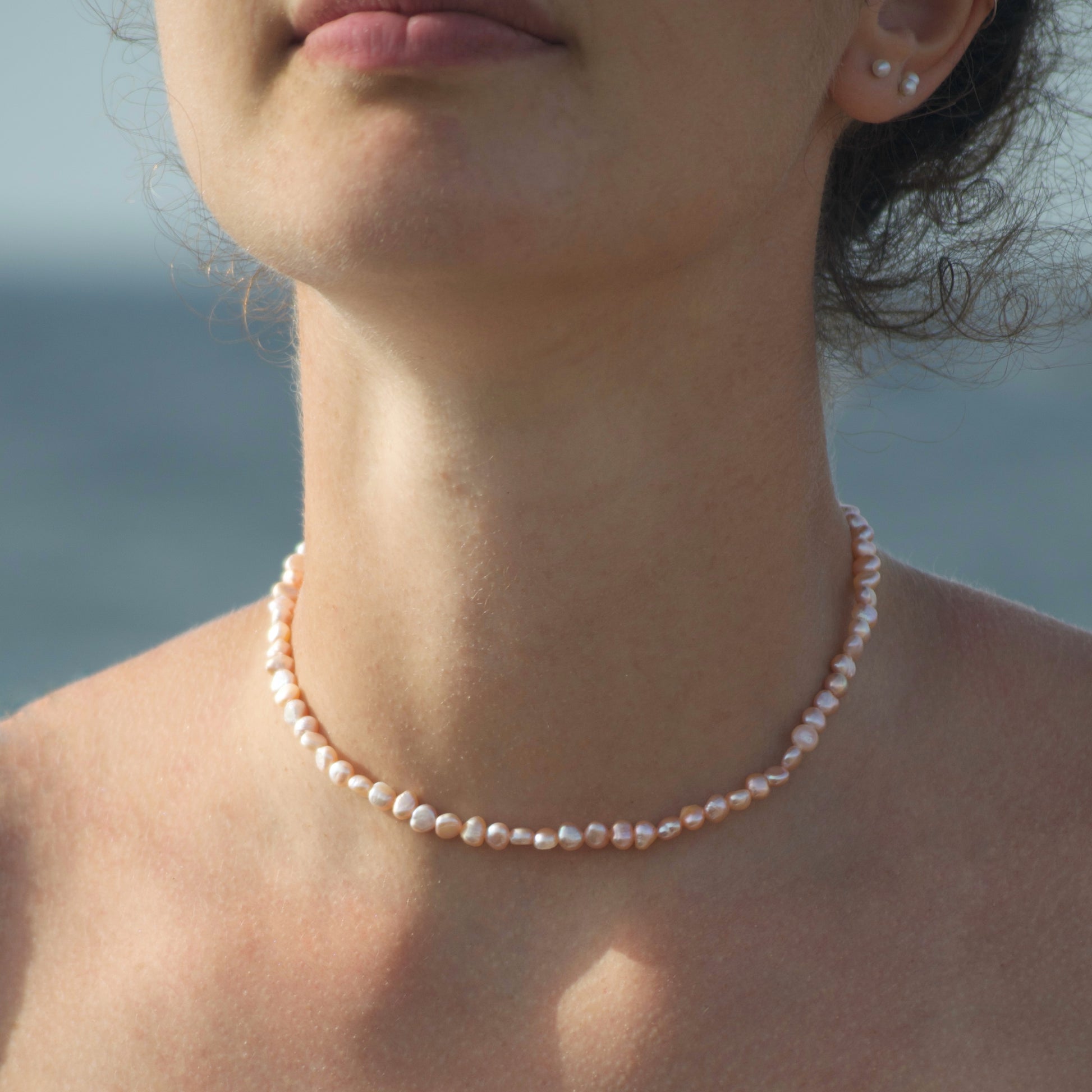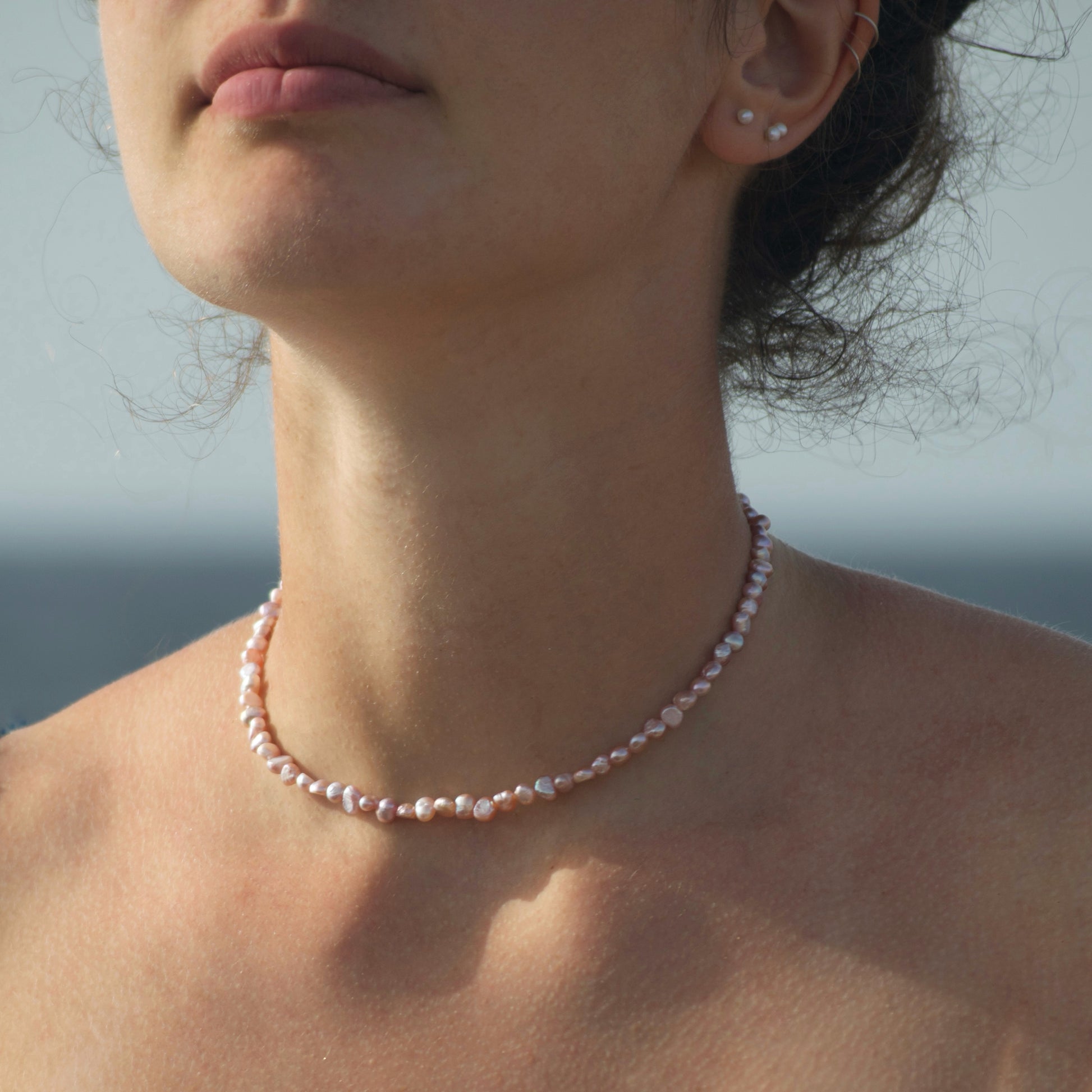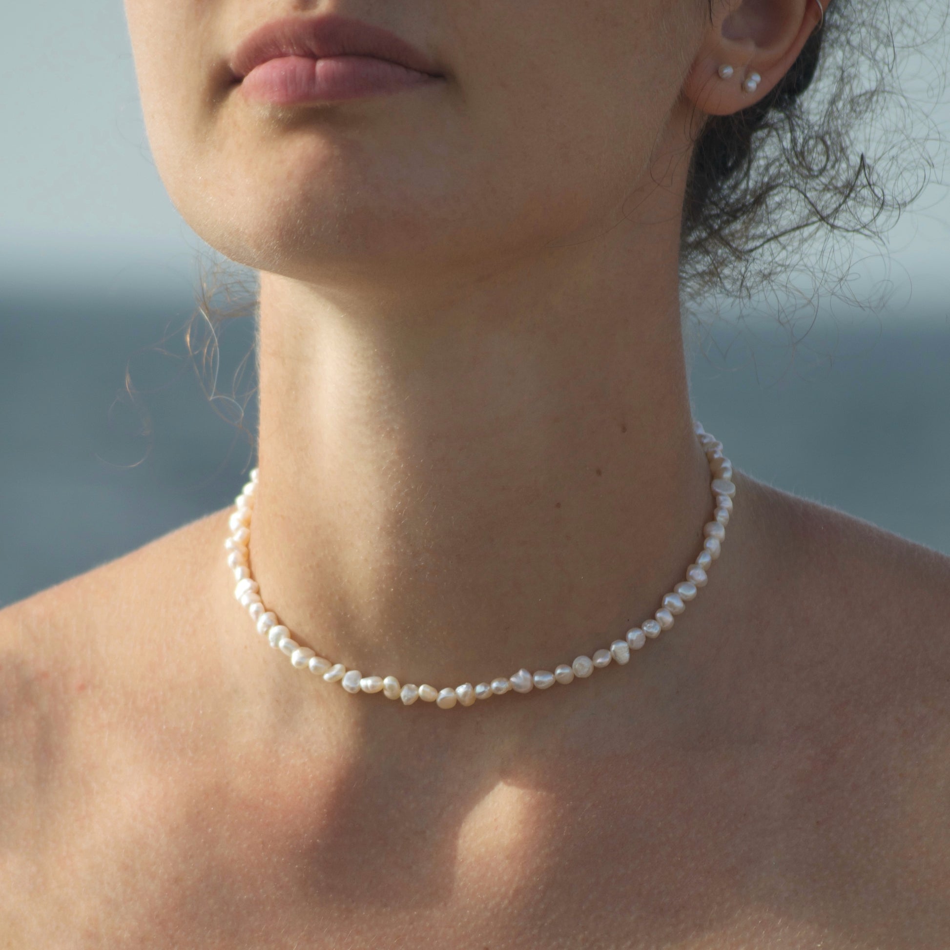 Necklace entirely handmade with faceted pearls and 925 silver clasp.