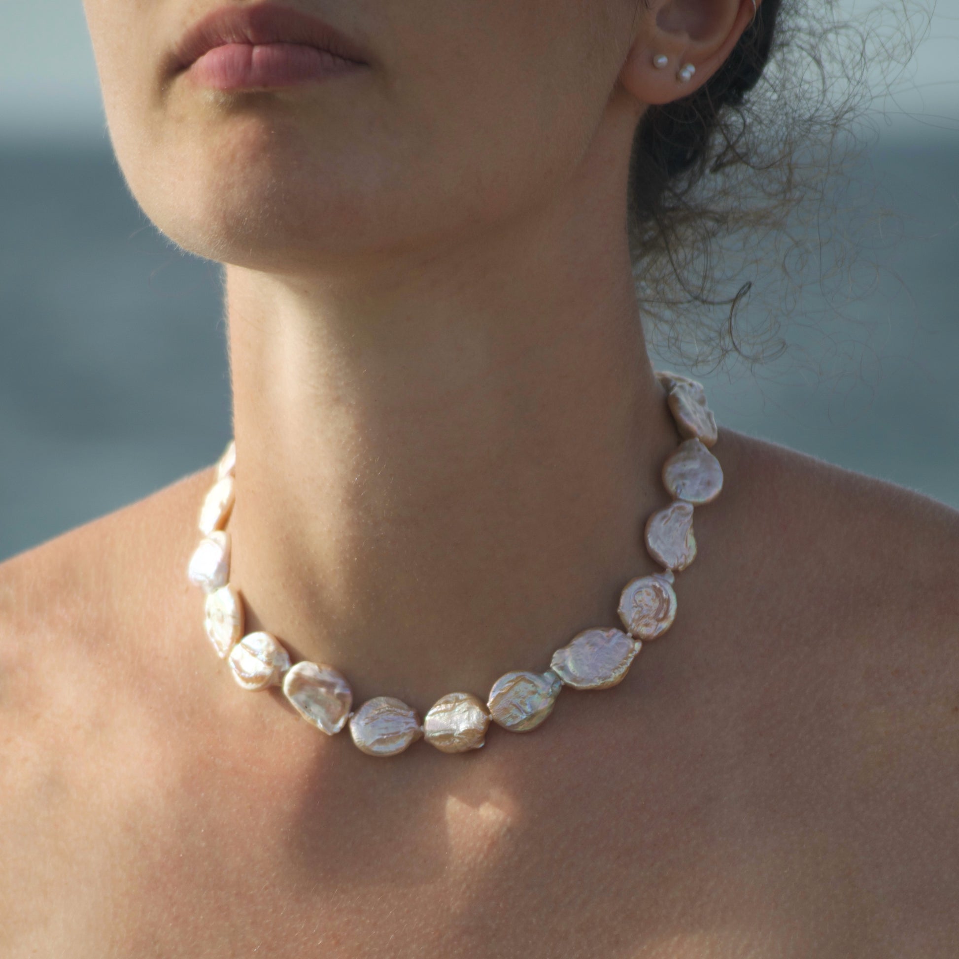 Necklace entirely handmade with baroque pearls and 925 silver clasp.