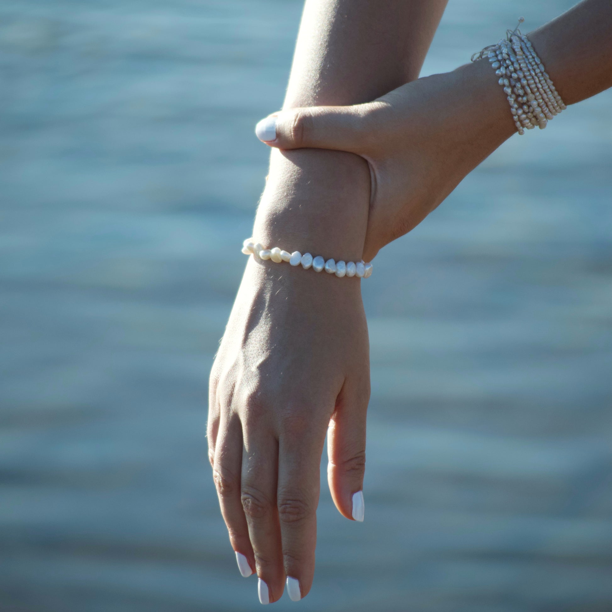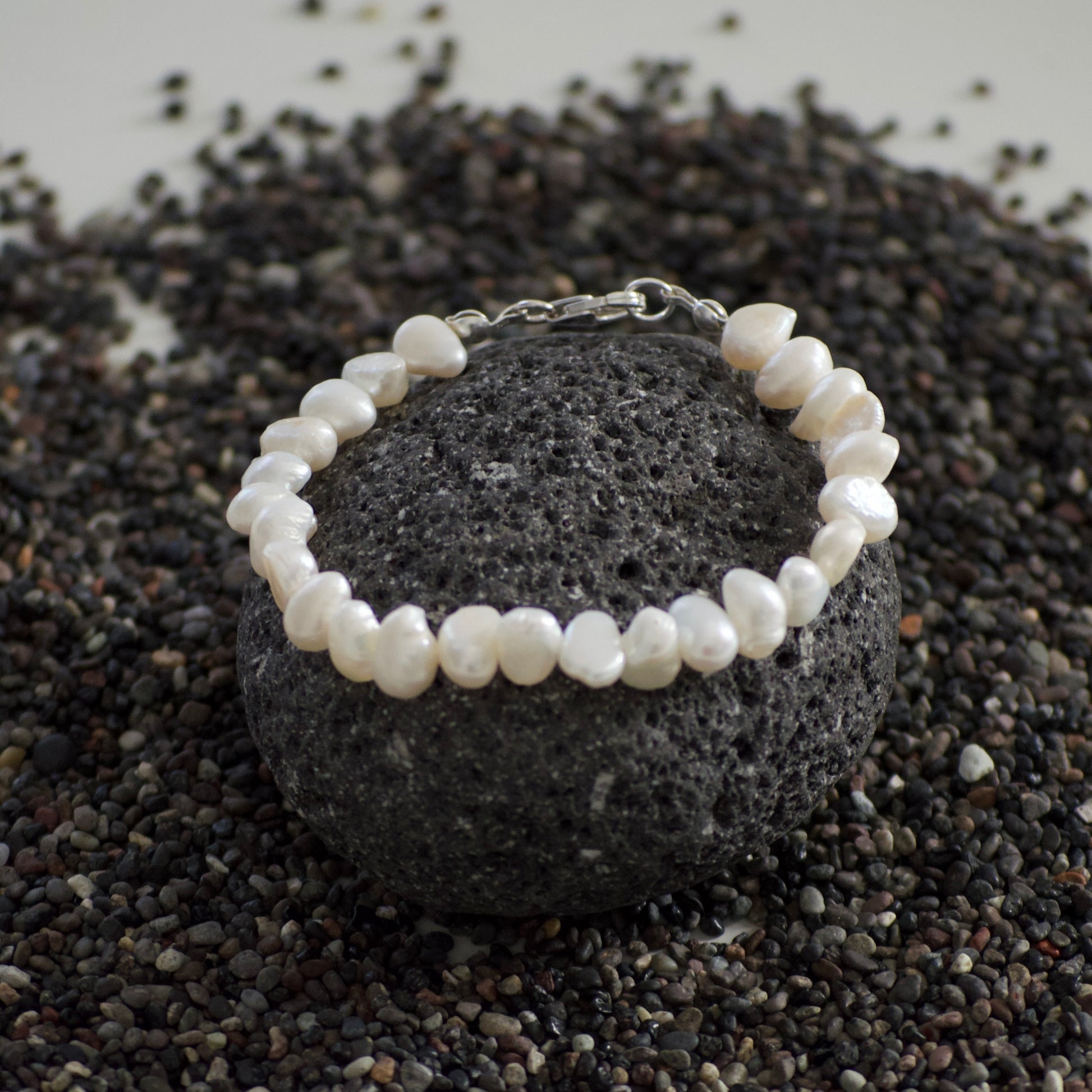 Bracelet entirely handmade with faceted pearls and 925 silver clasp.