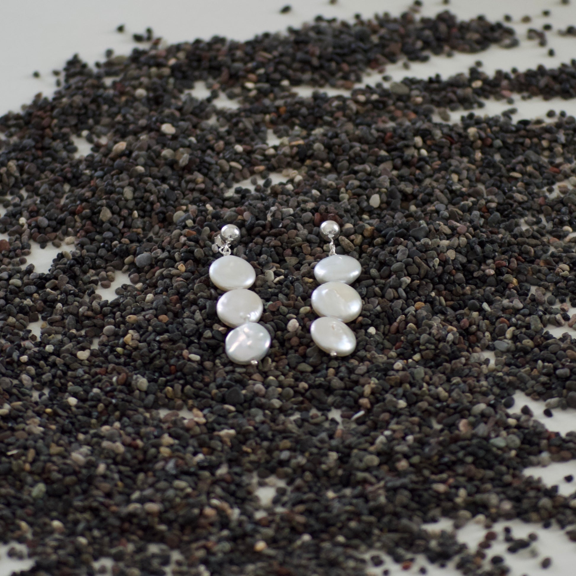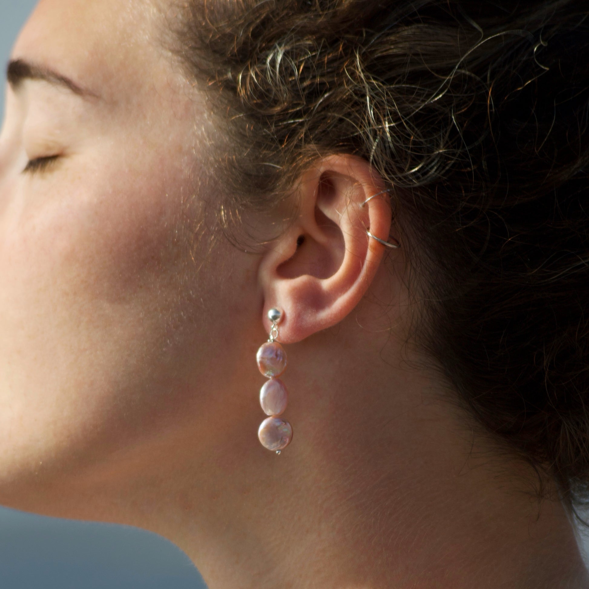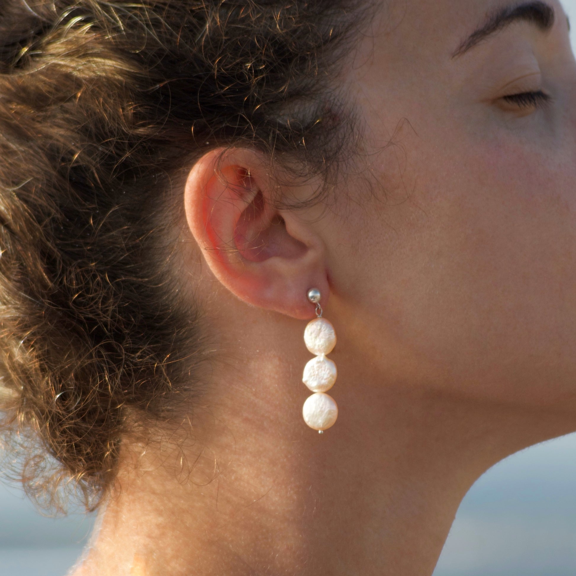 925 silver stud earrings with baroque pearl pendant.