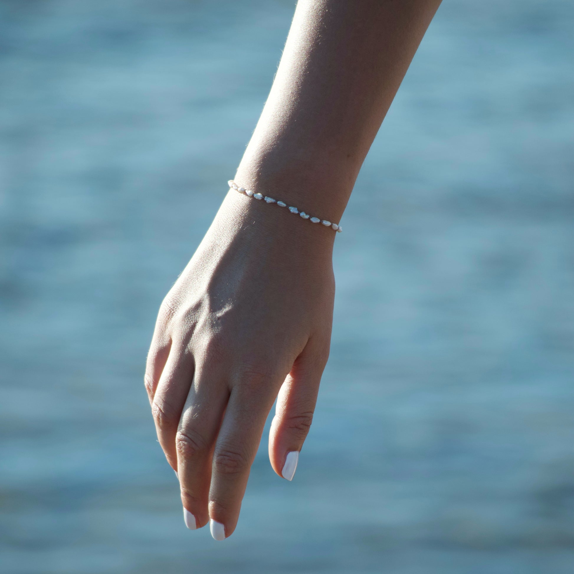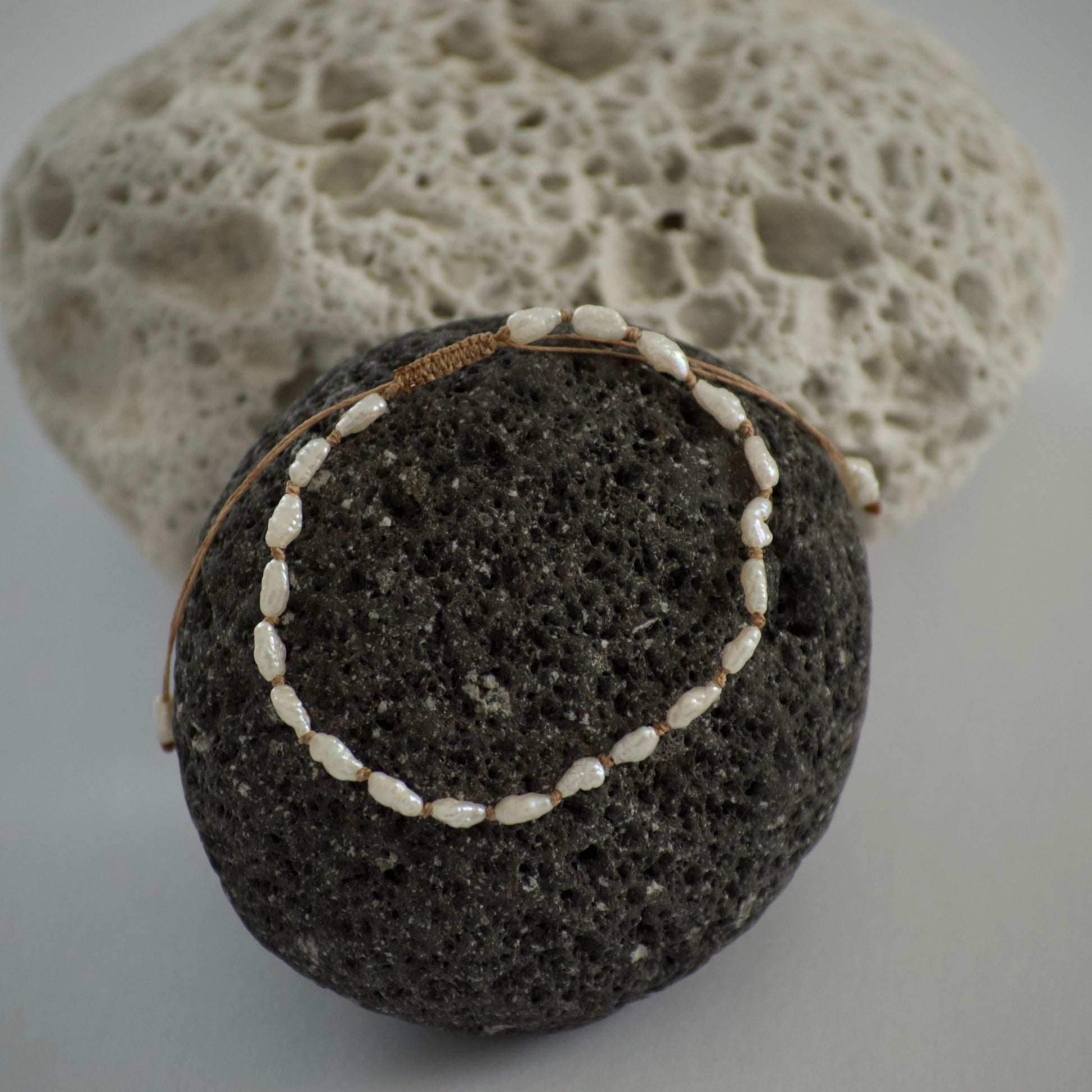 Bracelet entirely handmade with irregular pearls and waxed cotton thread.