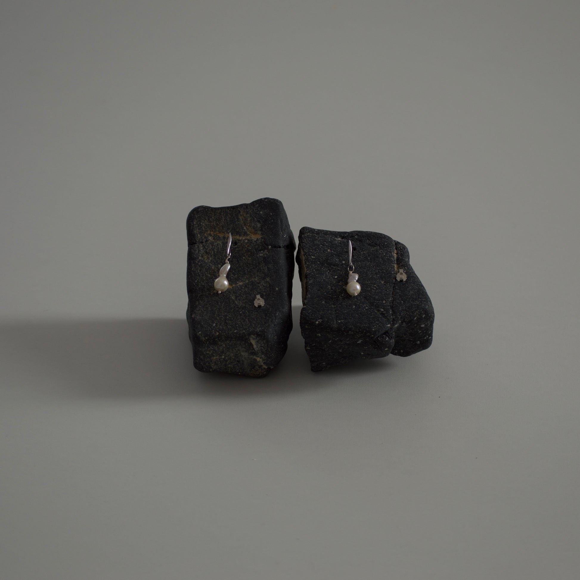 925 silver stud earrings with baroque pearl pendant.