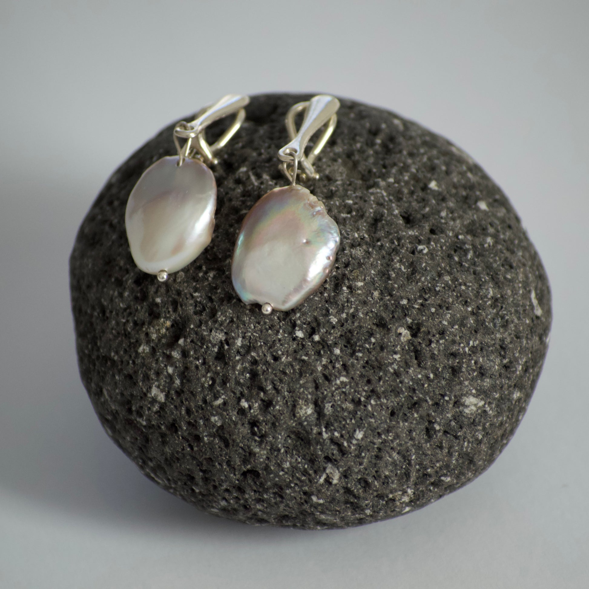 Clip-on earrings in 925 silver and baroque pearl as pendant.