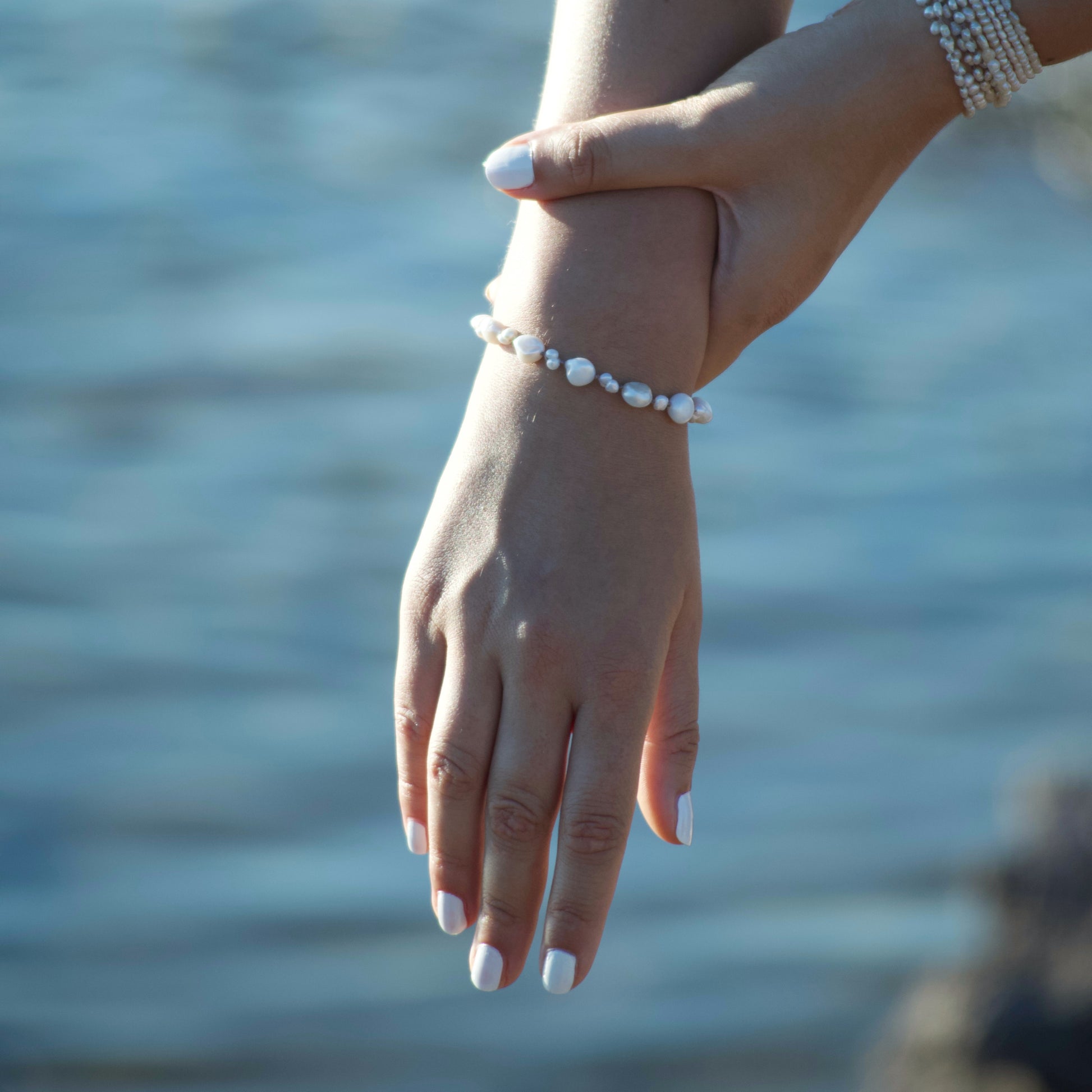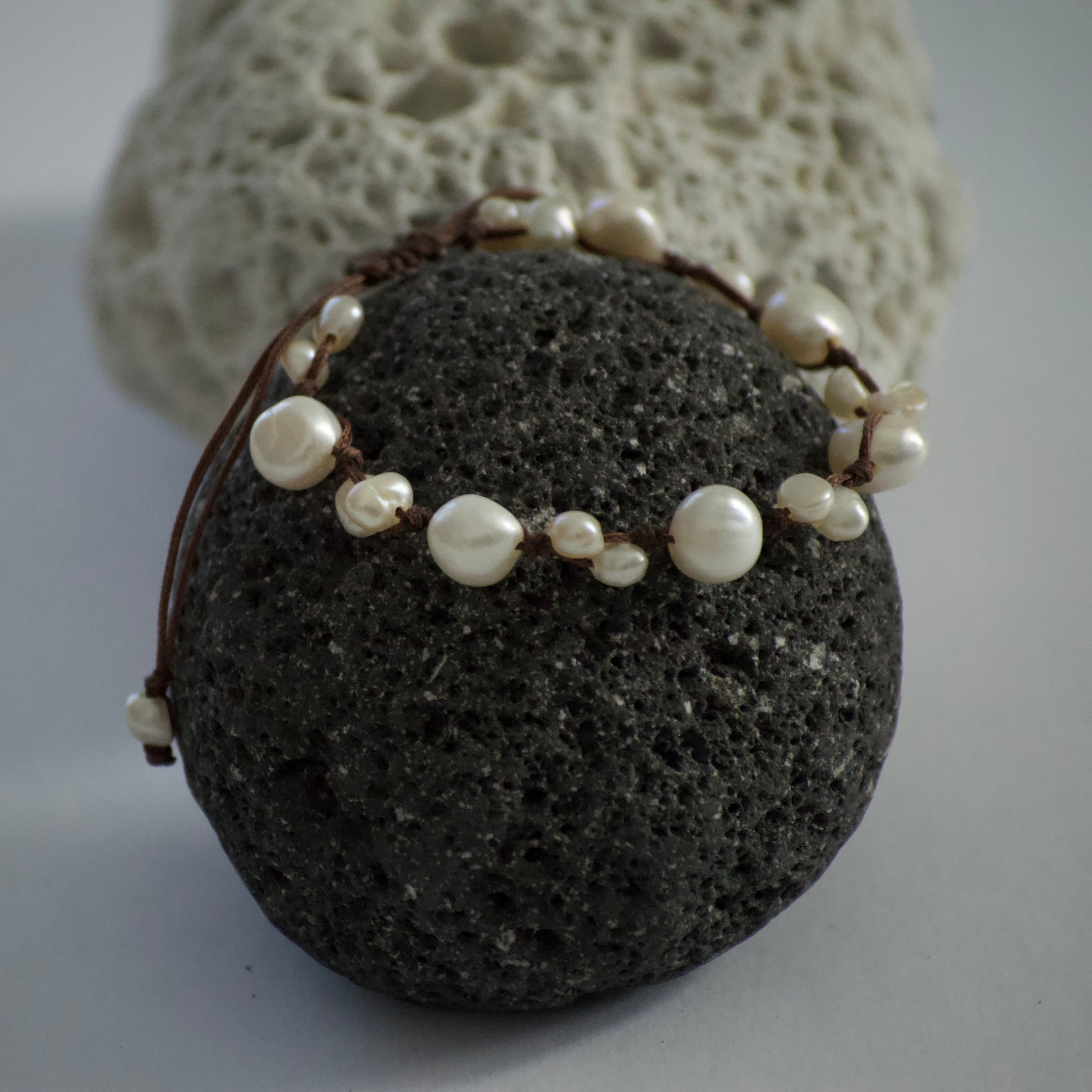 Bracelet entirely handmade with irregular pearls and waxed cotton thread.