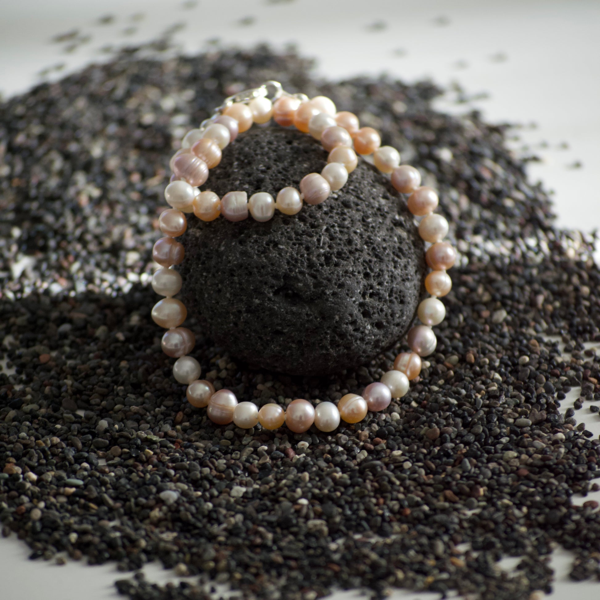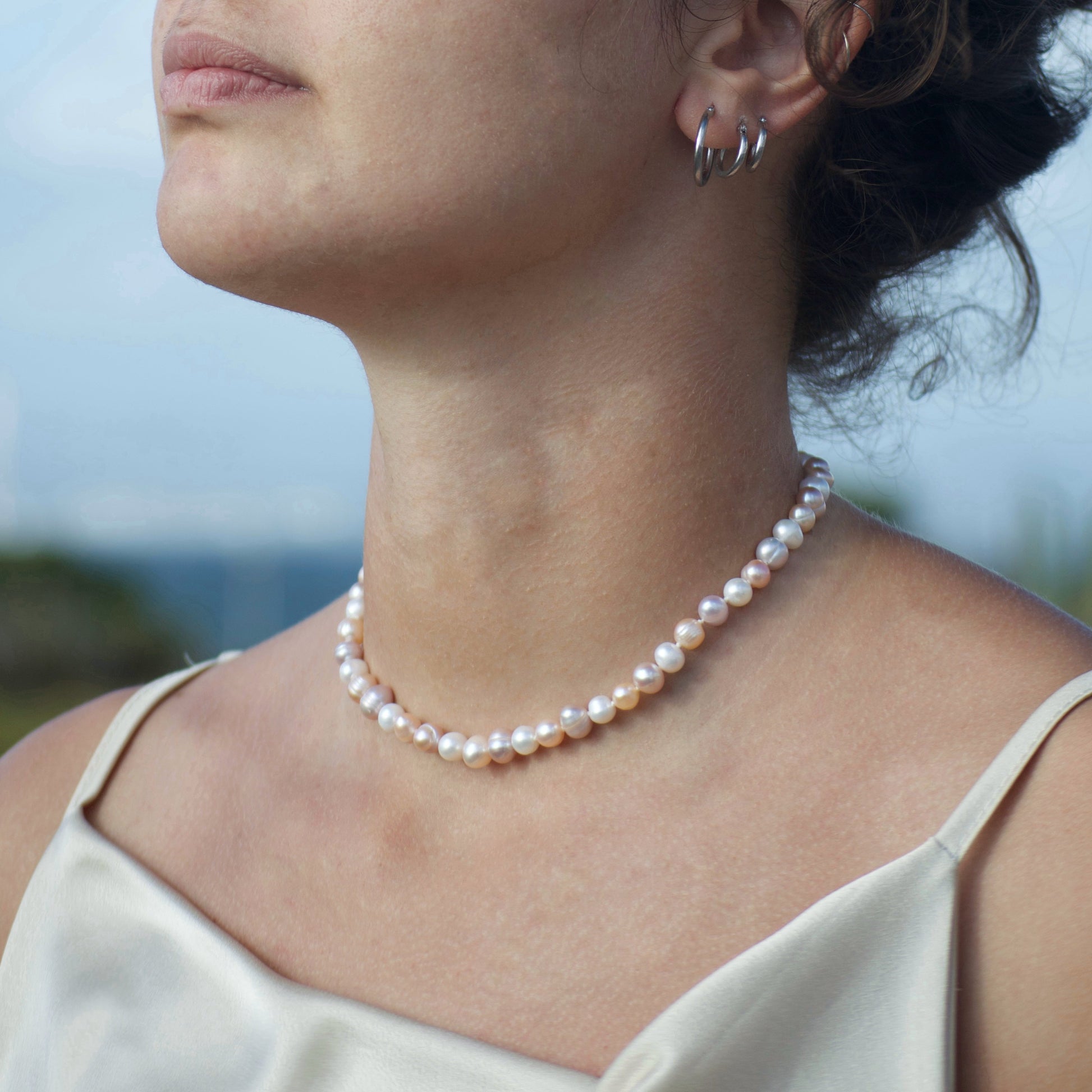 Necklace entirely handmade with stone pearls and 925 silver clasp.