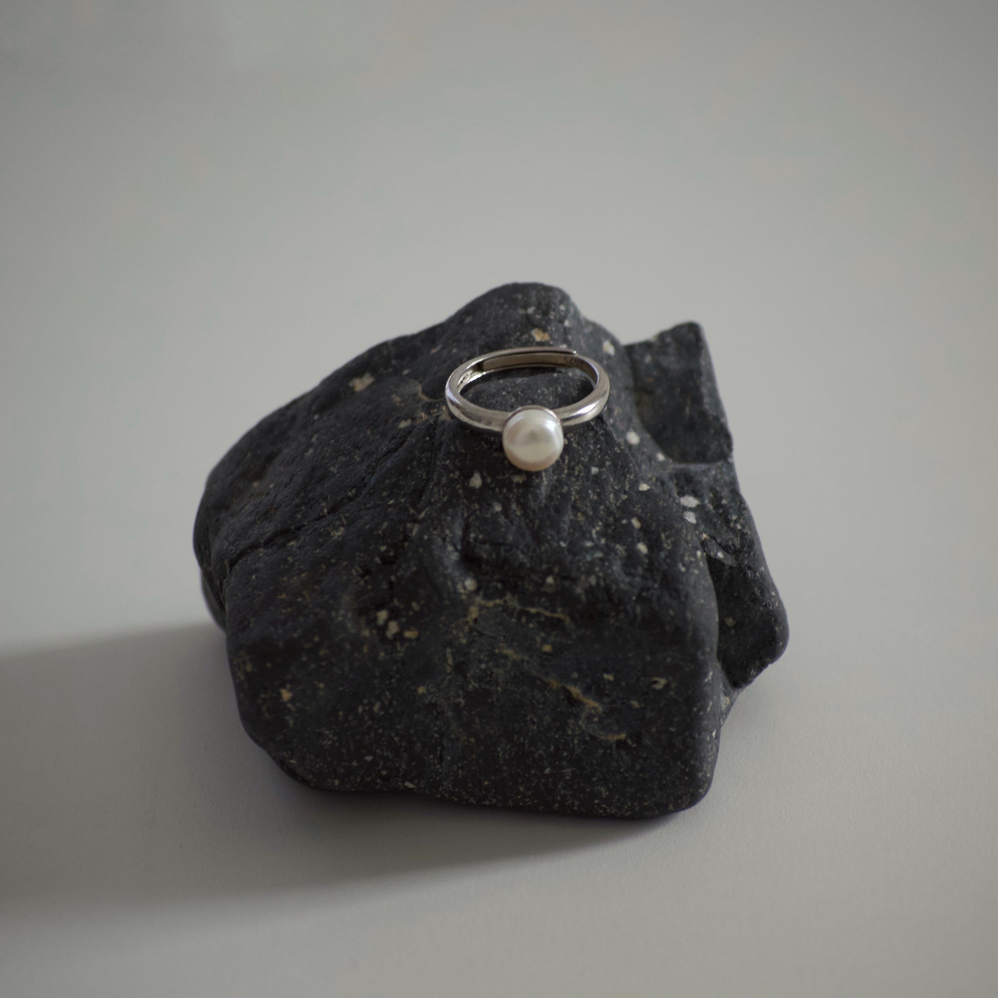 Anello regolabile in argento 925 con perla semitonda.