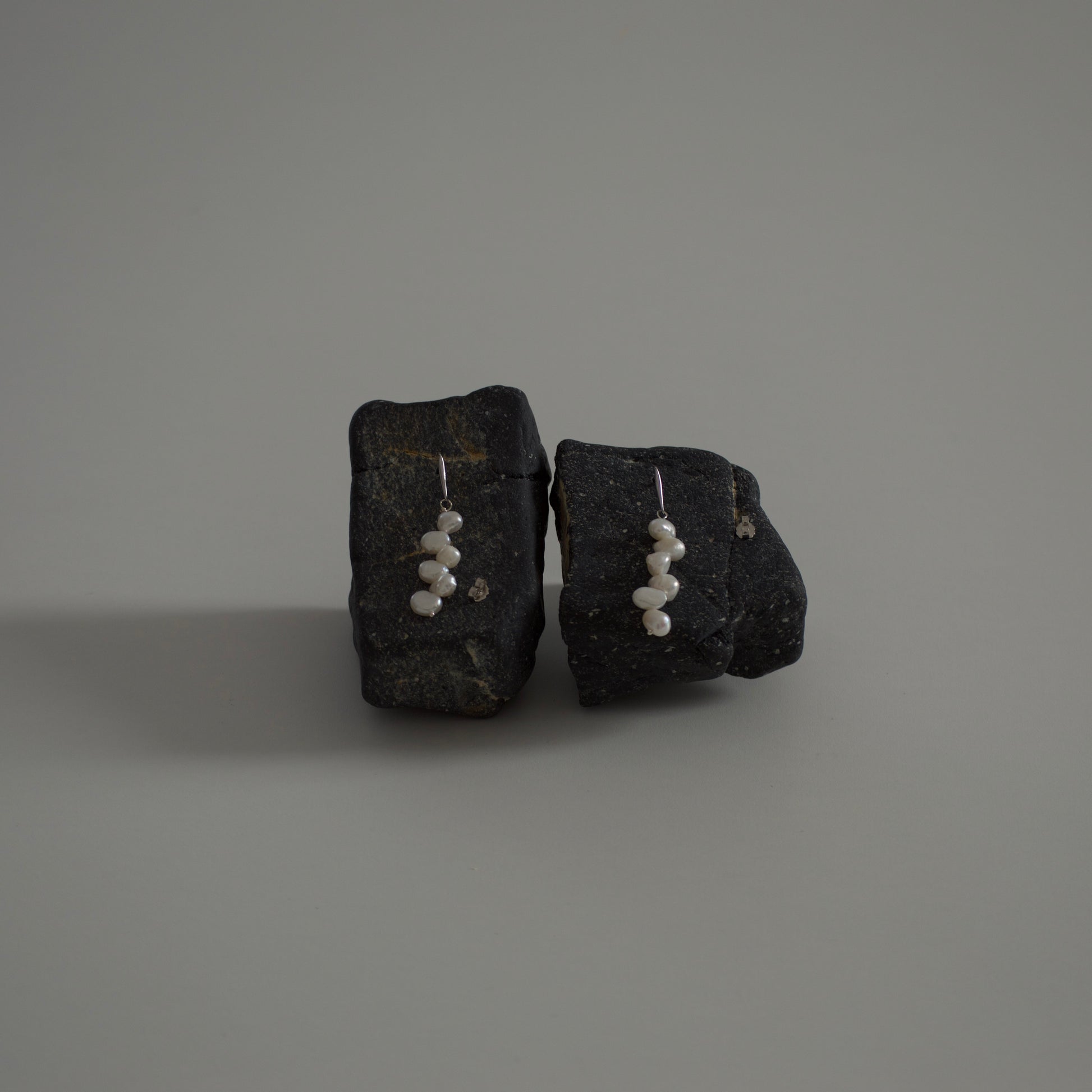 Orecchini a perno in argento 925 e perle con foro sfalsato a catena.