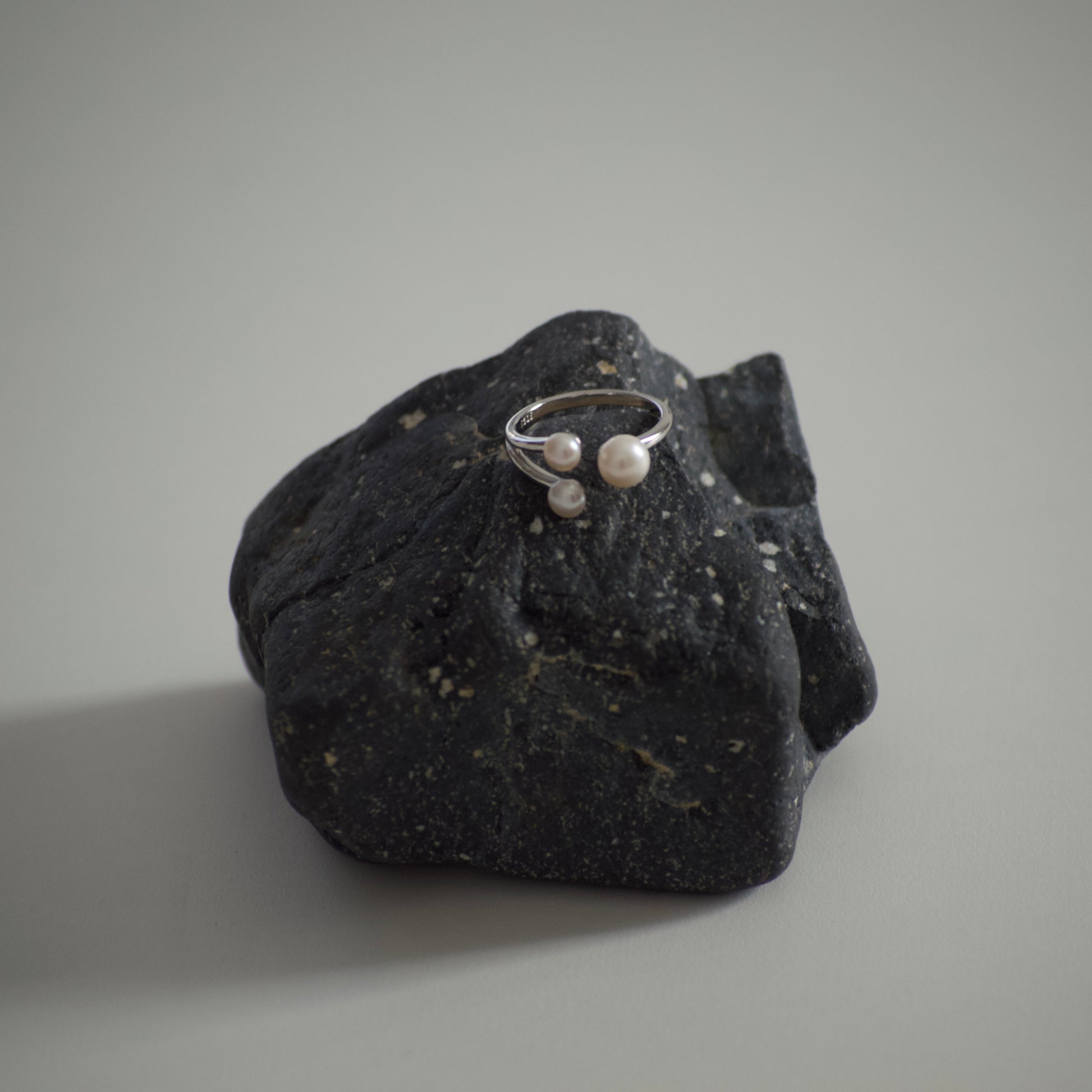 Anello regolabile in argento 925 con perla semitonda.