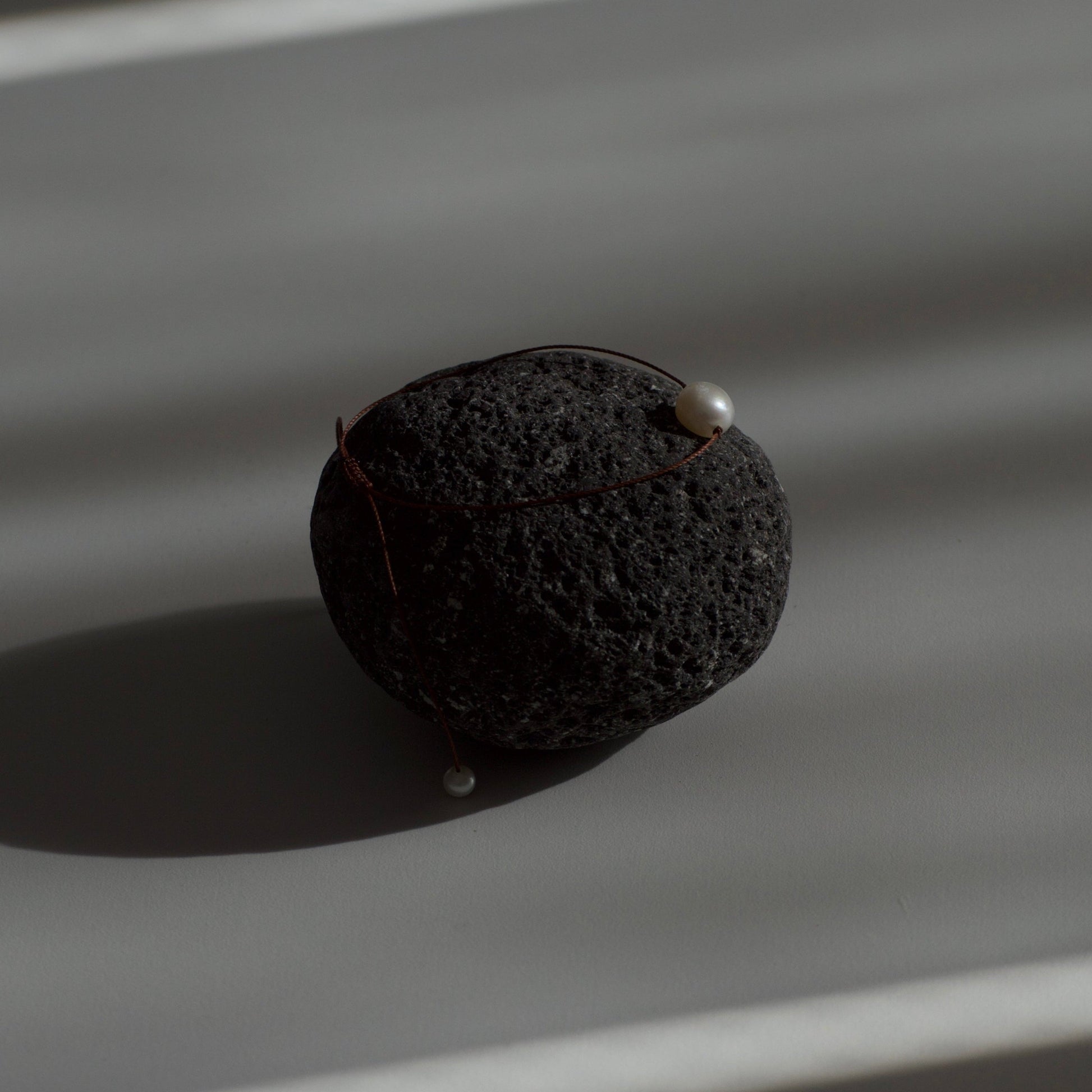 Bracciale interamente realizzato a mano con 1 perla irregolare e filo in cotone cerato.