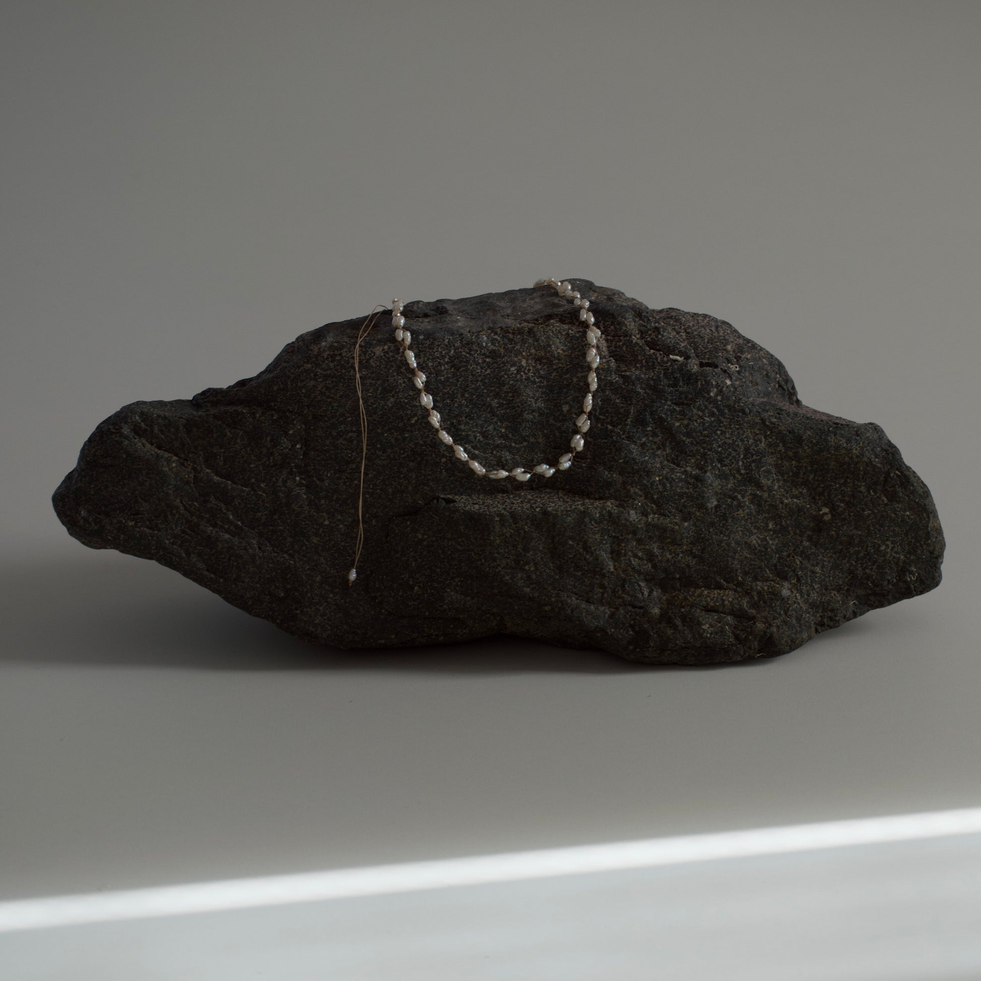 Collana interamente realizzata a mano con perle a chicco di riso rigate e filo in cotone cerato.