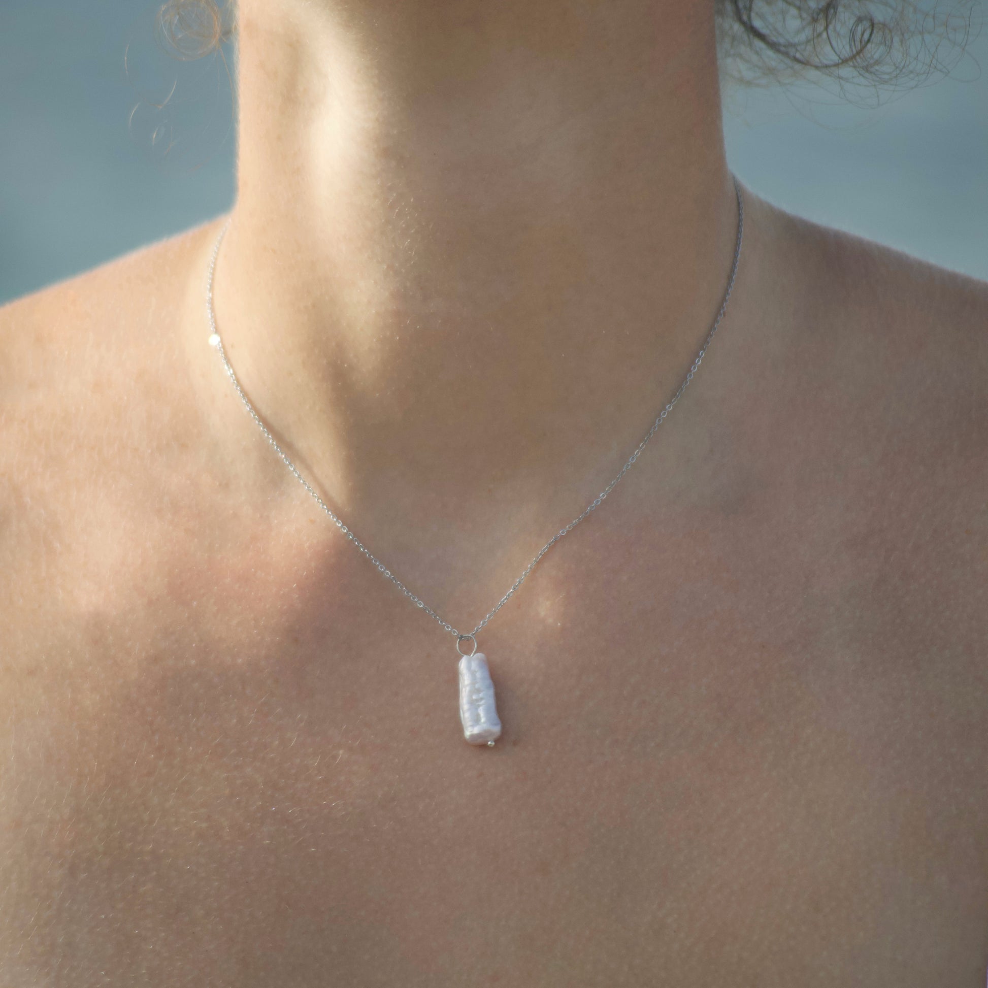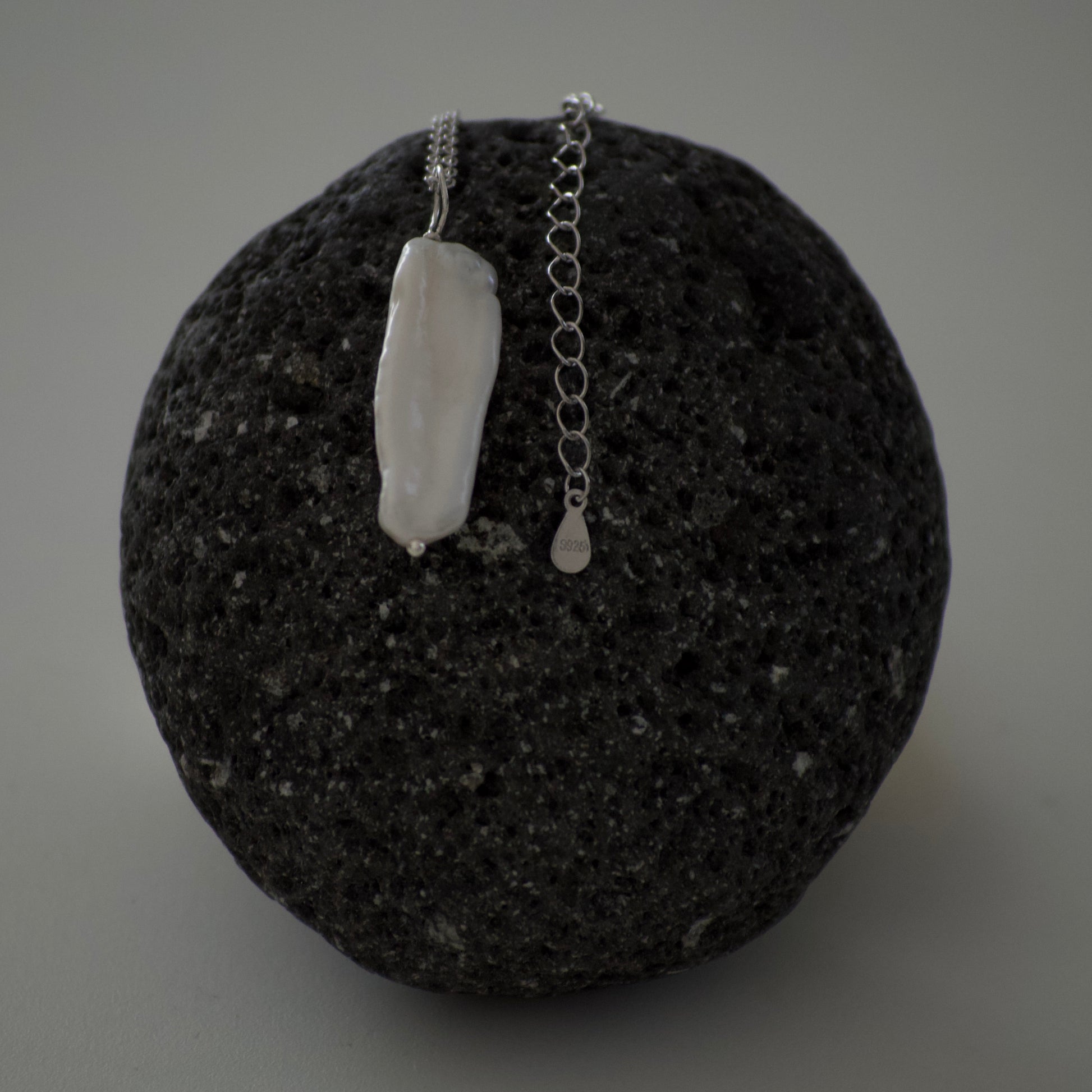 Collana in argento 925 con una perla barocca, irregolare come pendente.