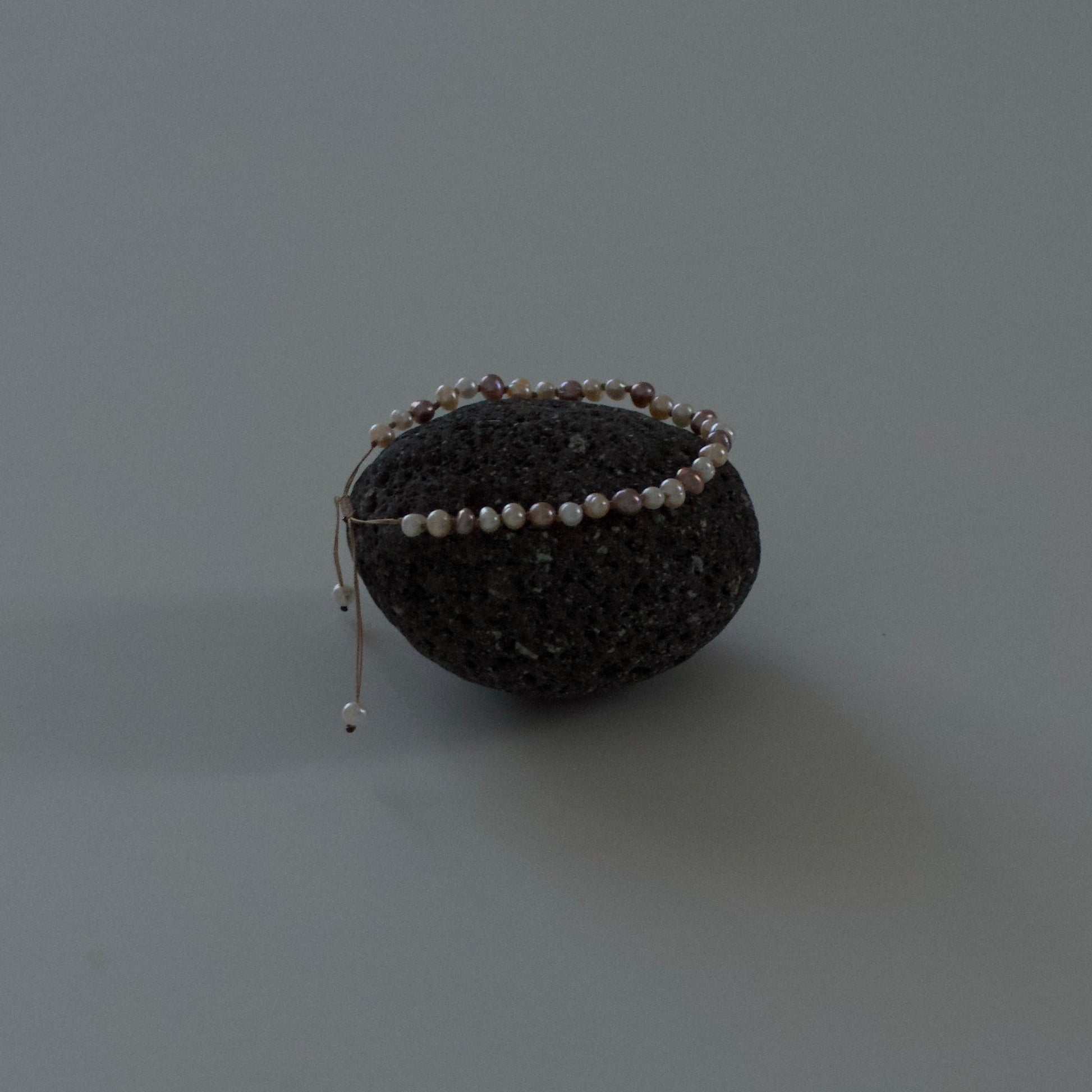 Bracciale interamente realizzato a mano con perle irregolari annodate di vario colore e filo in cotone cerato.